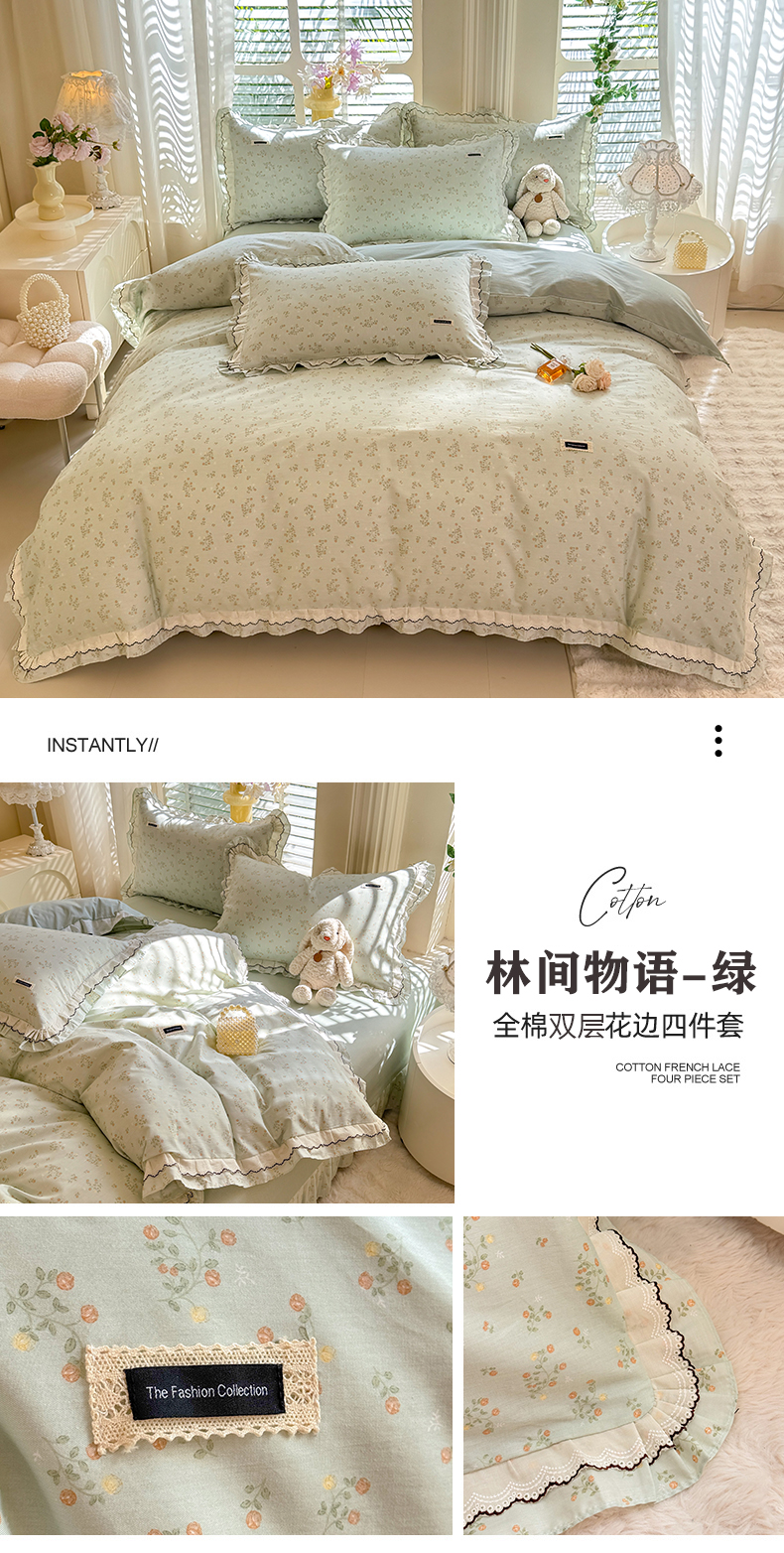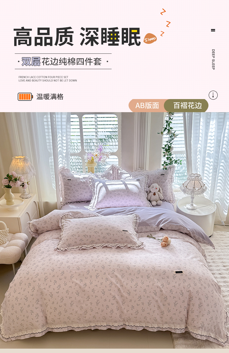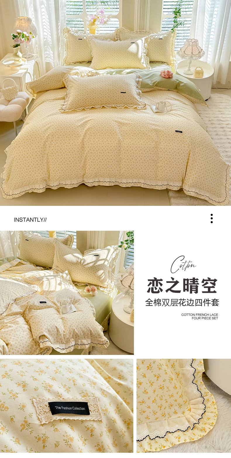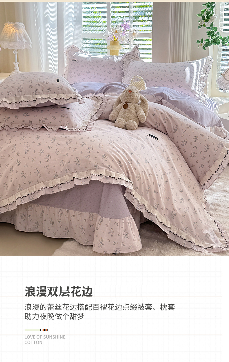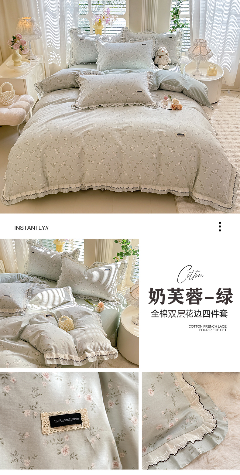 (总)艾唯希家纺 2025新款全棉双层花边四件套纯棉小碎花10个花型-花边系列