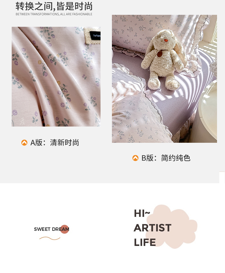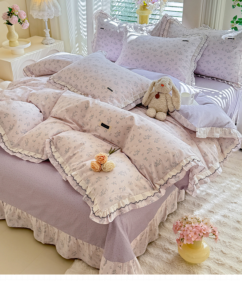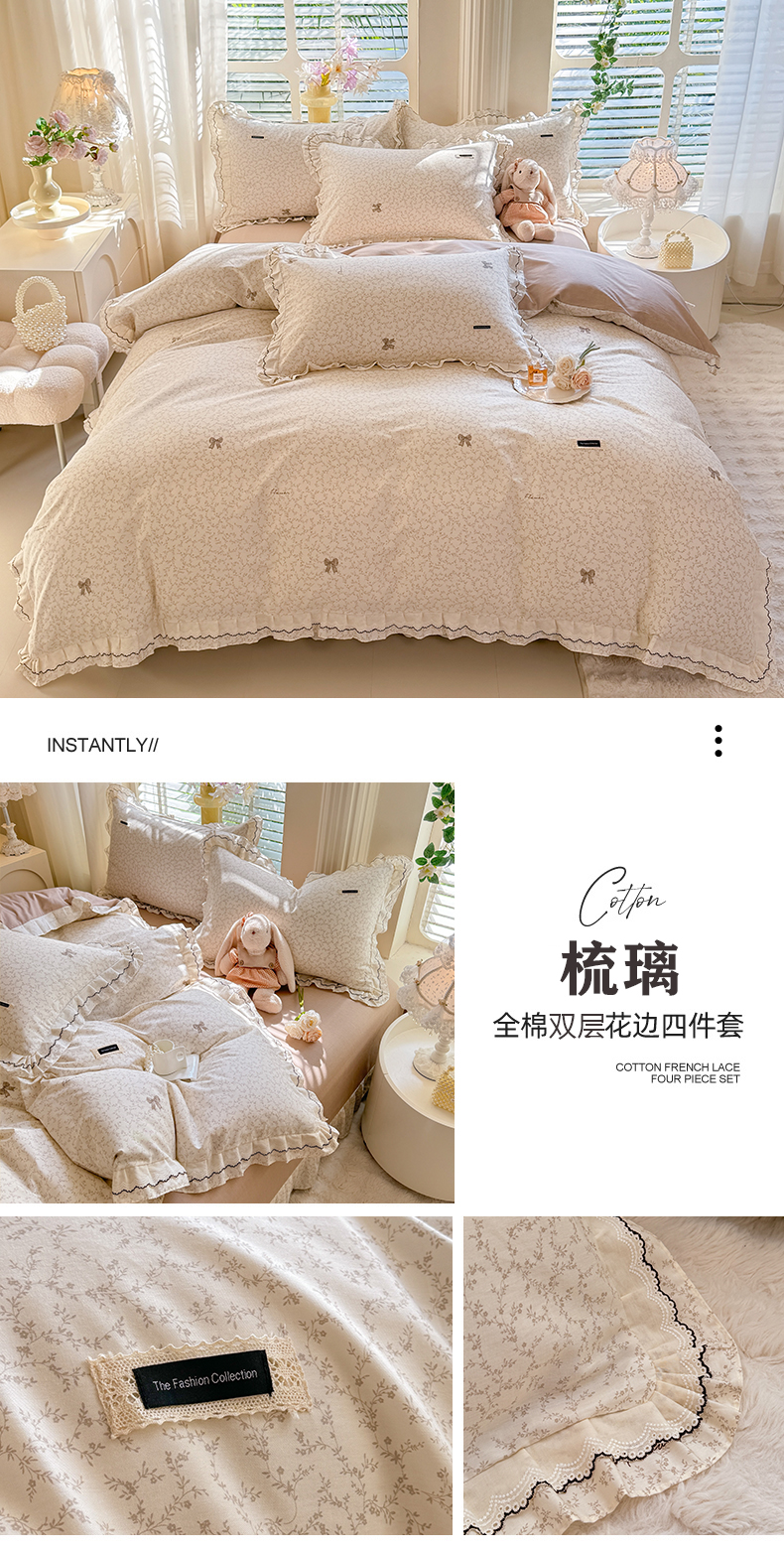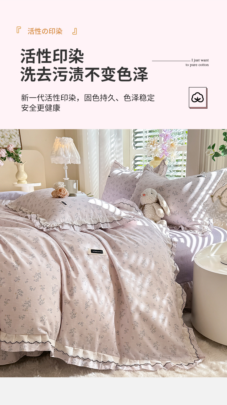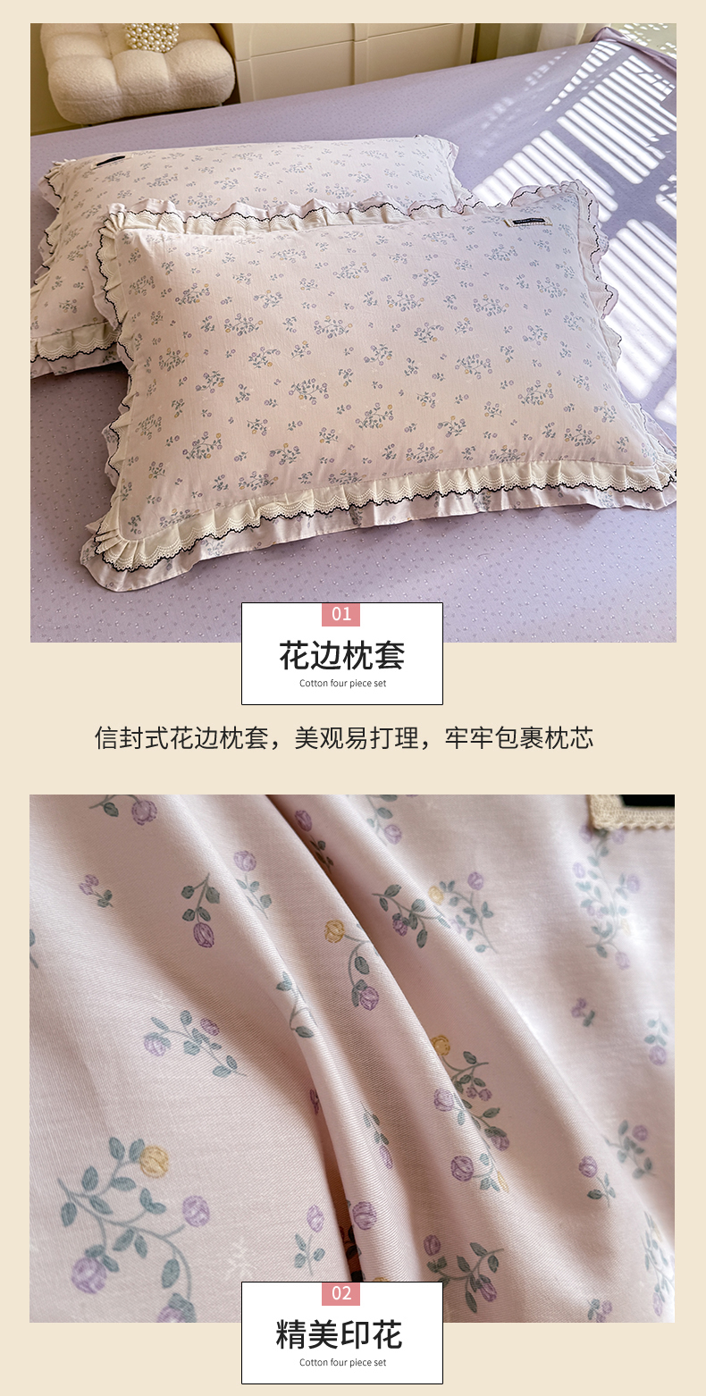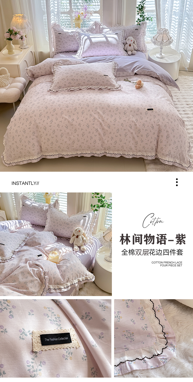(总)艾唯希家纺 2025新款全棉双层花边四件套纯棉小碎花10个花型-花边系列