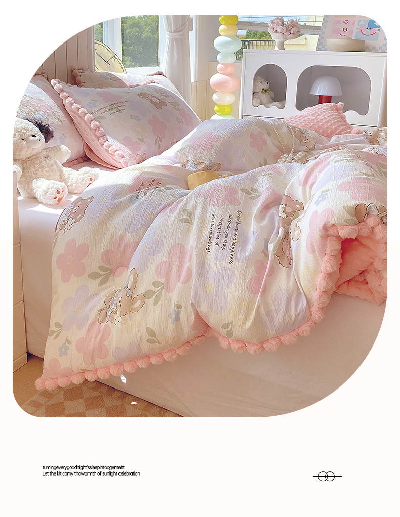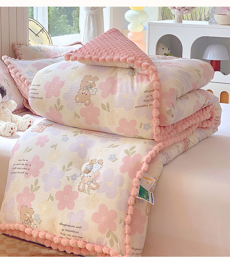 (总)宝士康家纺 2025新品毛球花边豆豆绒被子被芯冬被/春秋被/被芯/跨境外贸,花漾甜心,乐趣,萌犬小铺,沐春,千夏,松饼小狗,花间采趣,花乡小熊