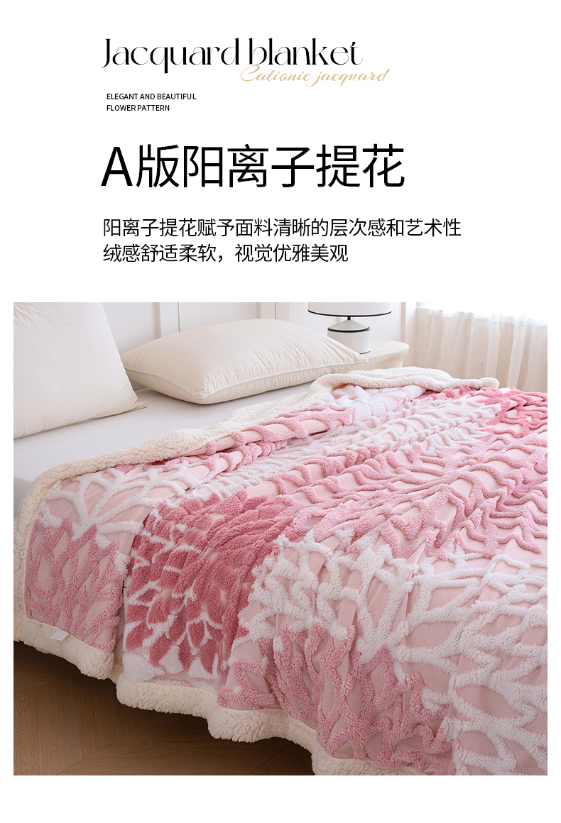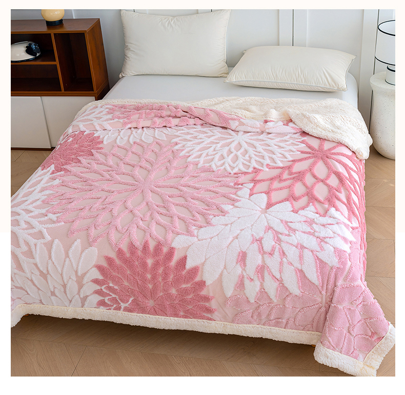 枋梢家纺 2025新款万花筒阳离子提花镂空塔芙绒羊羔绒保暖午睡双层毛毯办公室盖毯 万花筒-柔粉