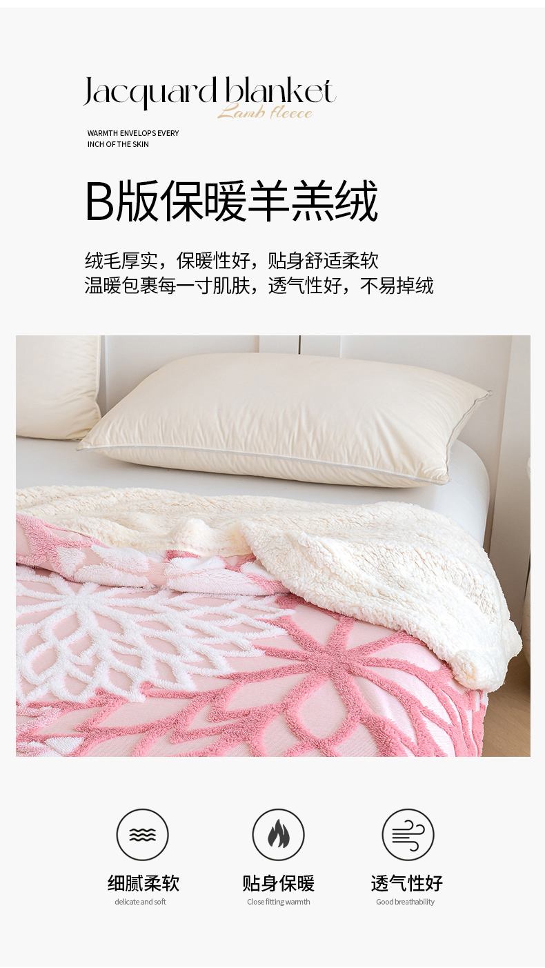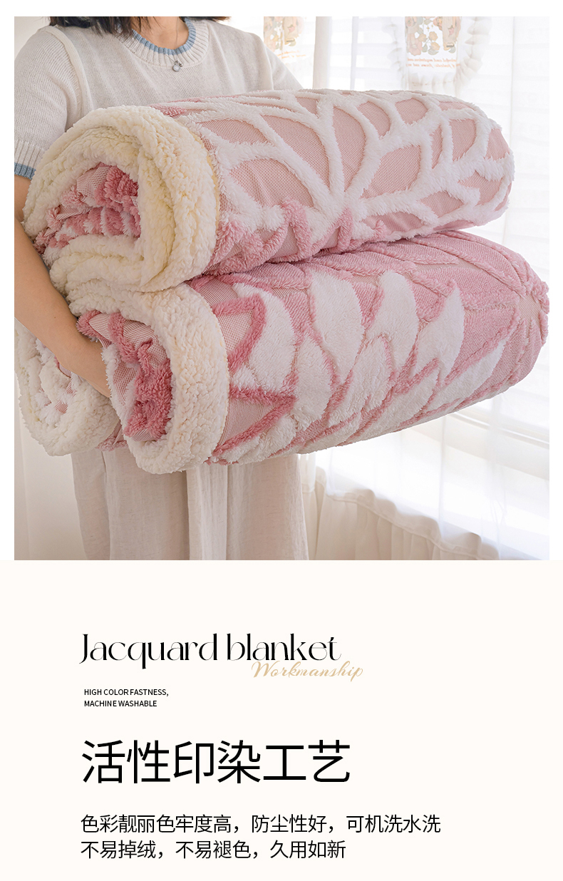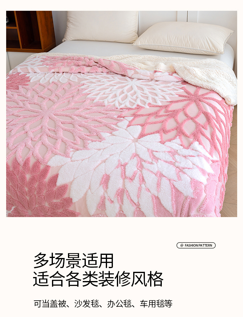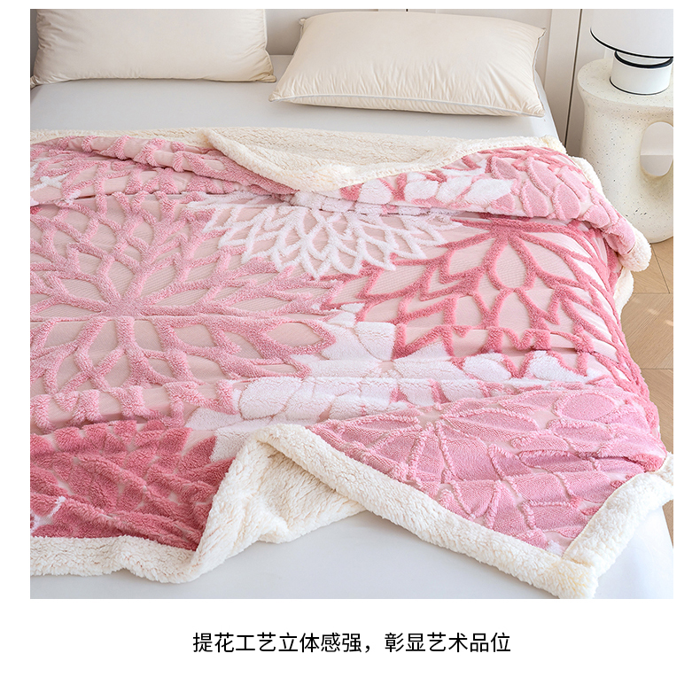 商品名称:枋梢家纺 2025新款万花筒阳离子提花镂空塔芙绒羊羔绒保暖午睡双层毛毯办公室盖毯 万花筒-柔粉