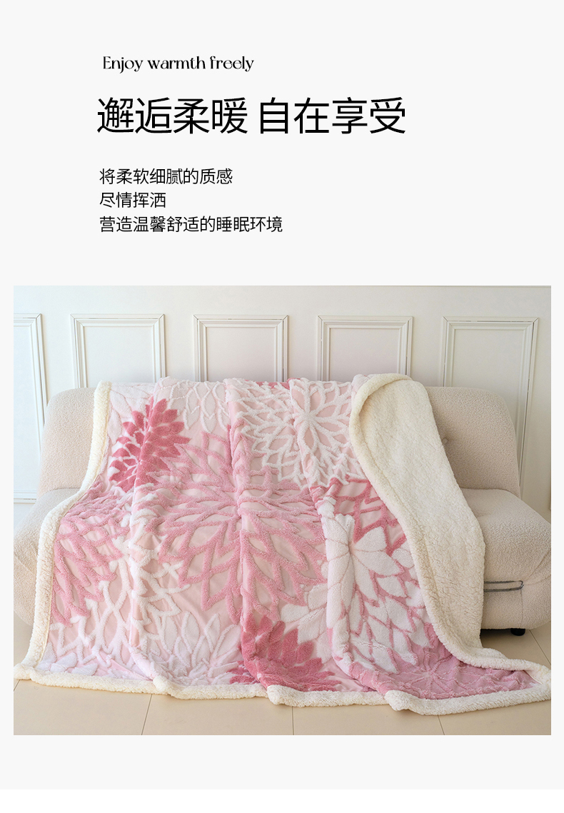 (总)枋梢家纺 2025新款亮丝兔毛绒兔毛提花暖居花漾羊羔绒 双层加厚保暖盖毯 居家午睡保暖毯,花漾-粉色,花漾-咖色,花漾-绿色,花漾-米黄,花漾-浅灰,花漾-深灰,花漾-驼色,花漾-紫色,包装