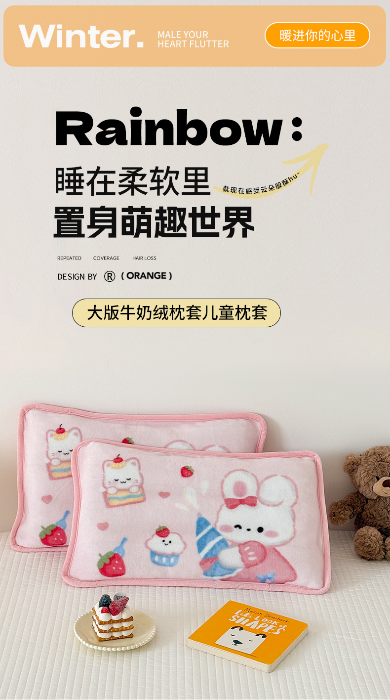 商品名称:嗨生活 2025年原创大版牛奶绒枕套 枕芯 儿童枕套 枕芯 幼儿园枕套枕芯 牛奶绒-萌小兔