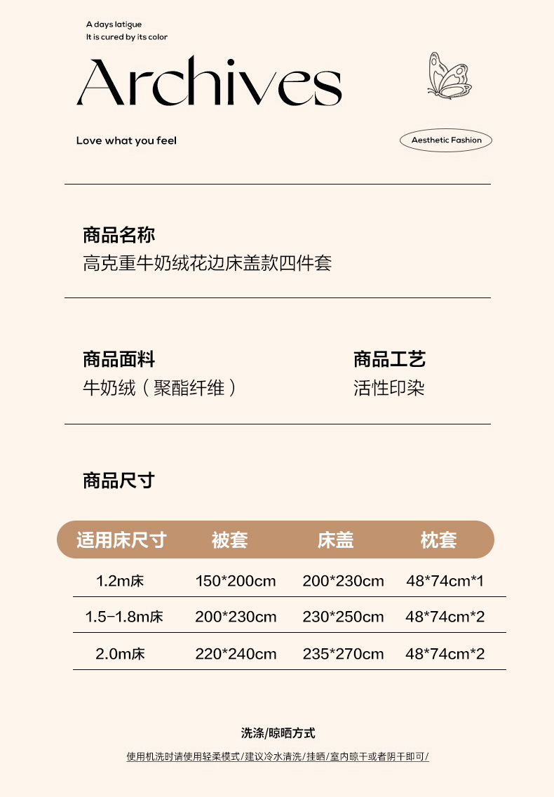 【床盖款】1.8四件套-被套200x230床盖235x250 | ¥135.00 |