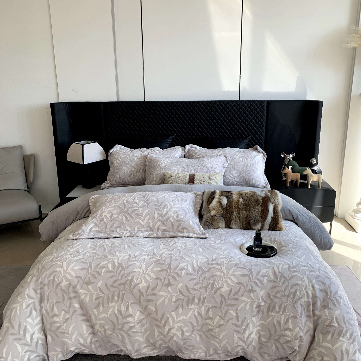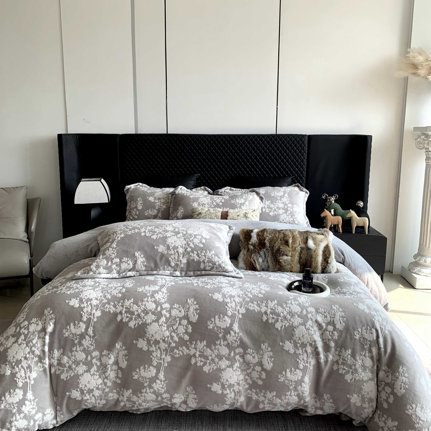 奈萝家纺 2025新款加厚雕花绒牛奶绒四件套 叶叶细雨灰