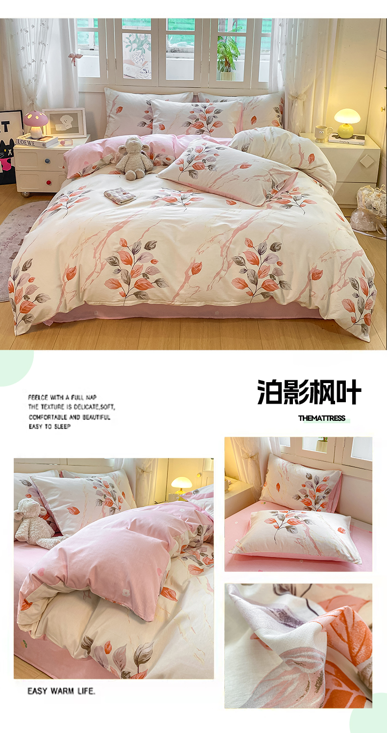 直播2024新款斜纹磨毛印花四件套植物羊绒套件秋风似锦,秋风似锦