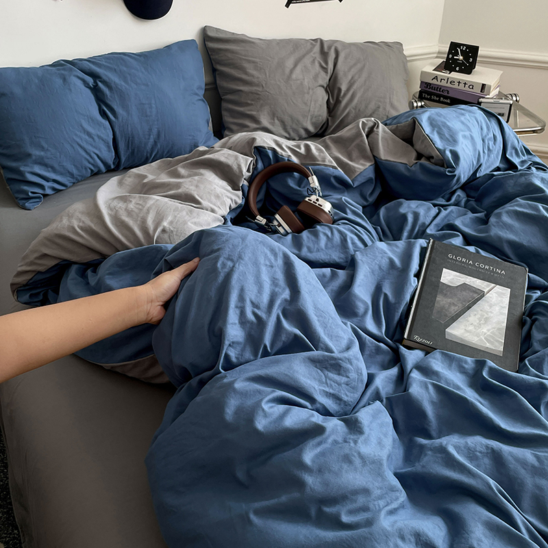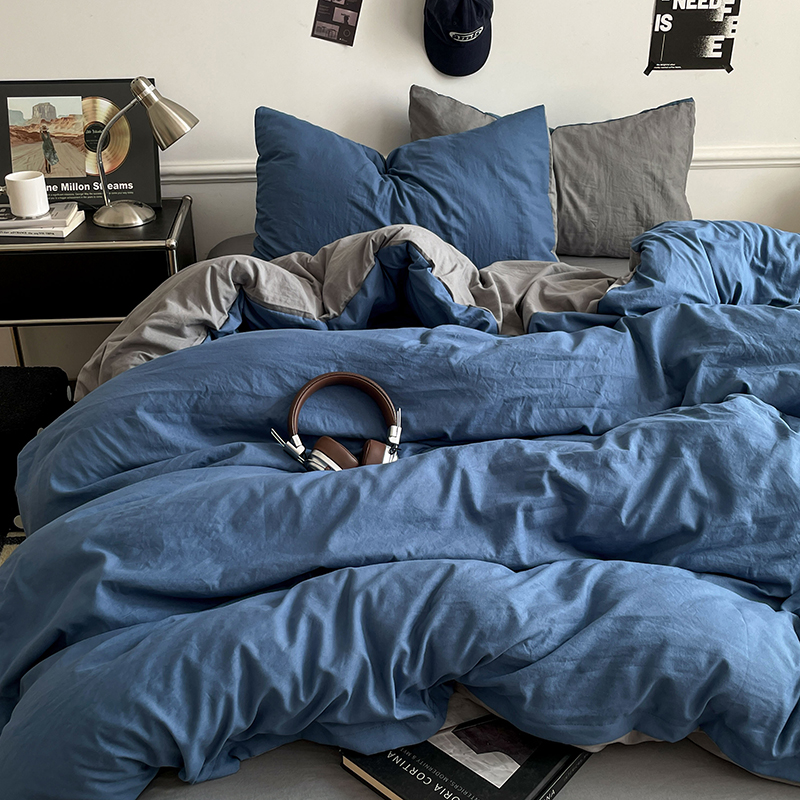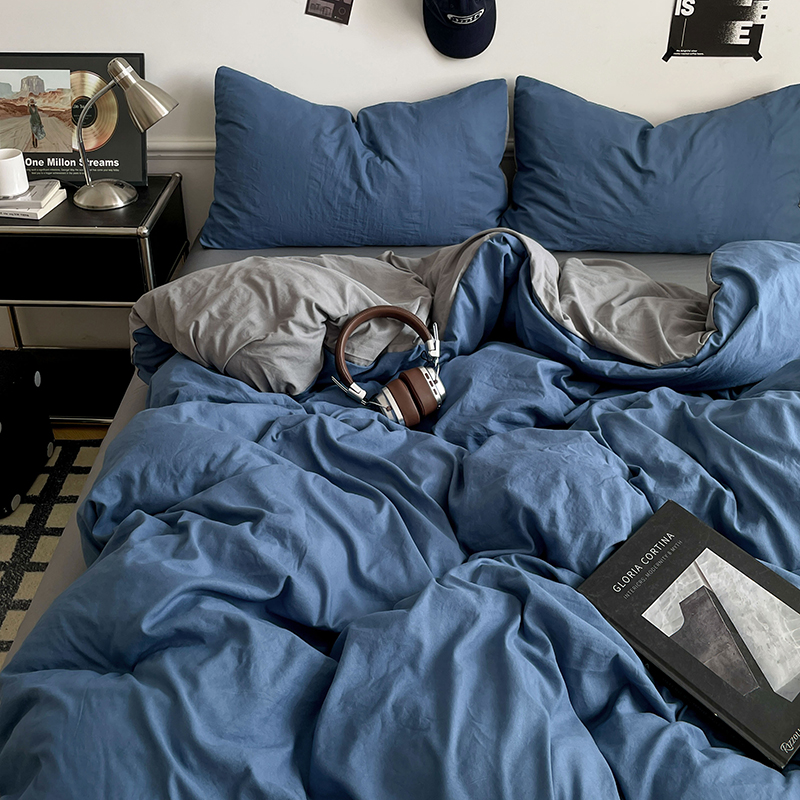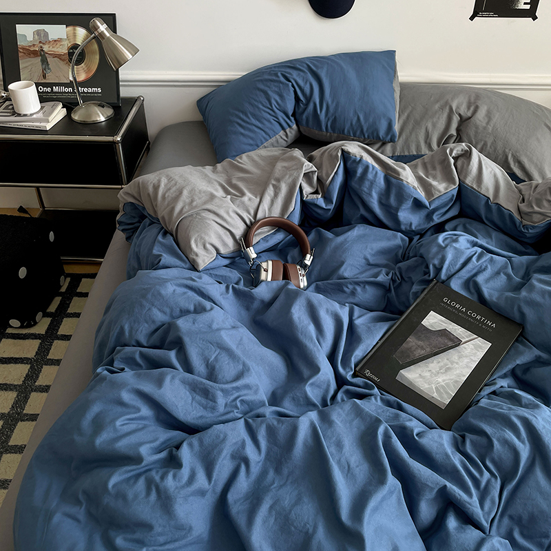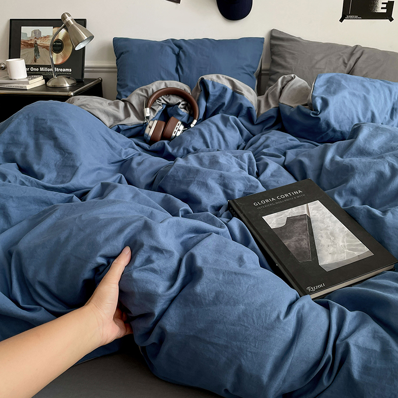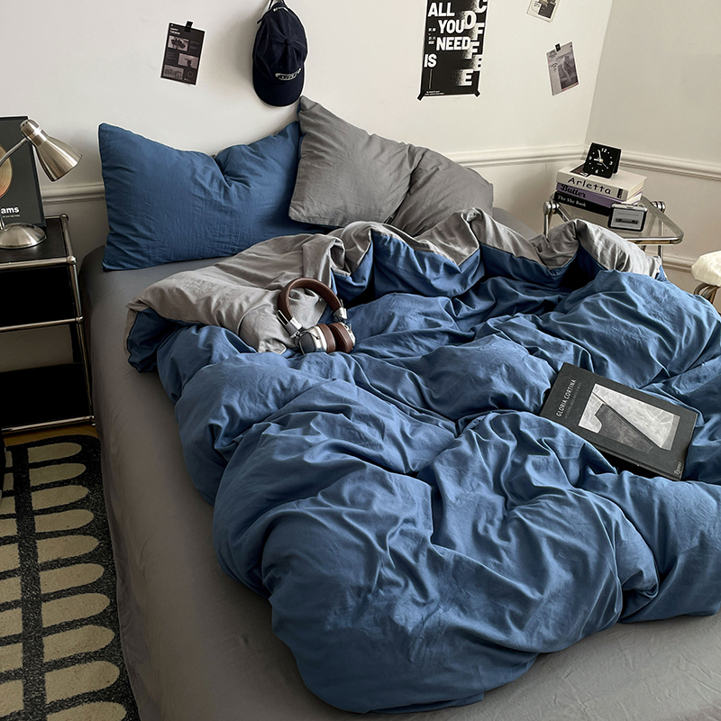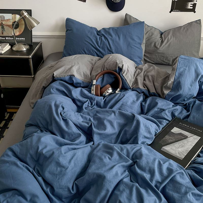 当前位置: 91家纺网 > 商品网购 > 床品套件 > 四件套 > 水洗棉四件套 > 梦卓家纺 2025爆款ins风超柔褶皱亲肤磨毛水洗棉四件套 爵士蓝+浅灰