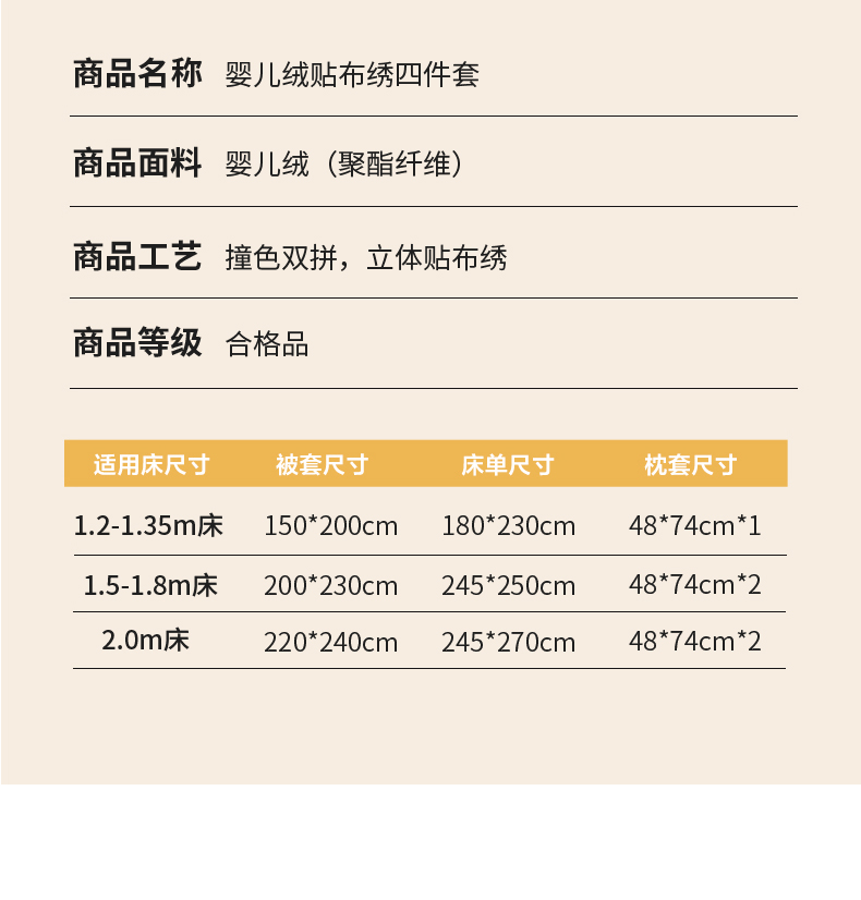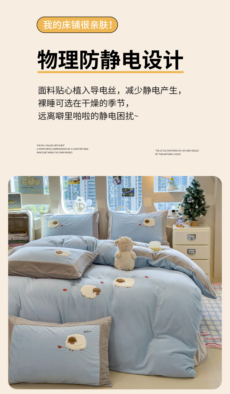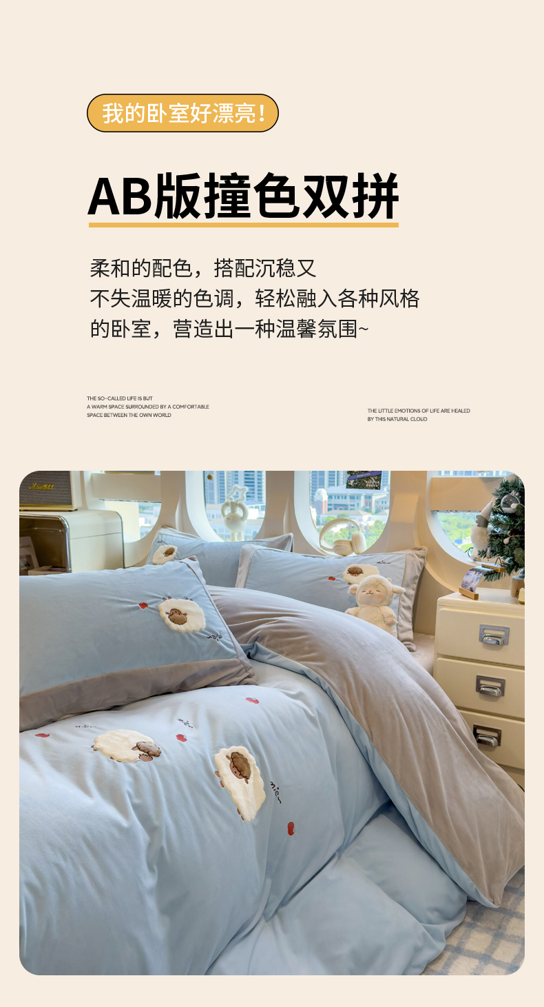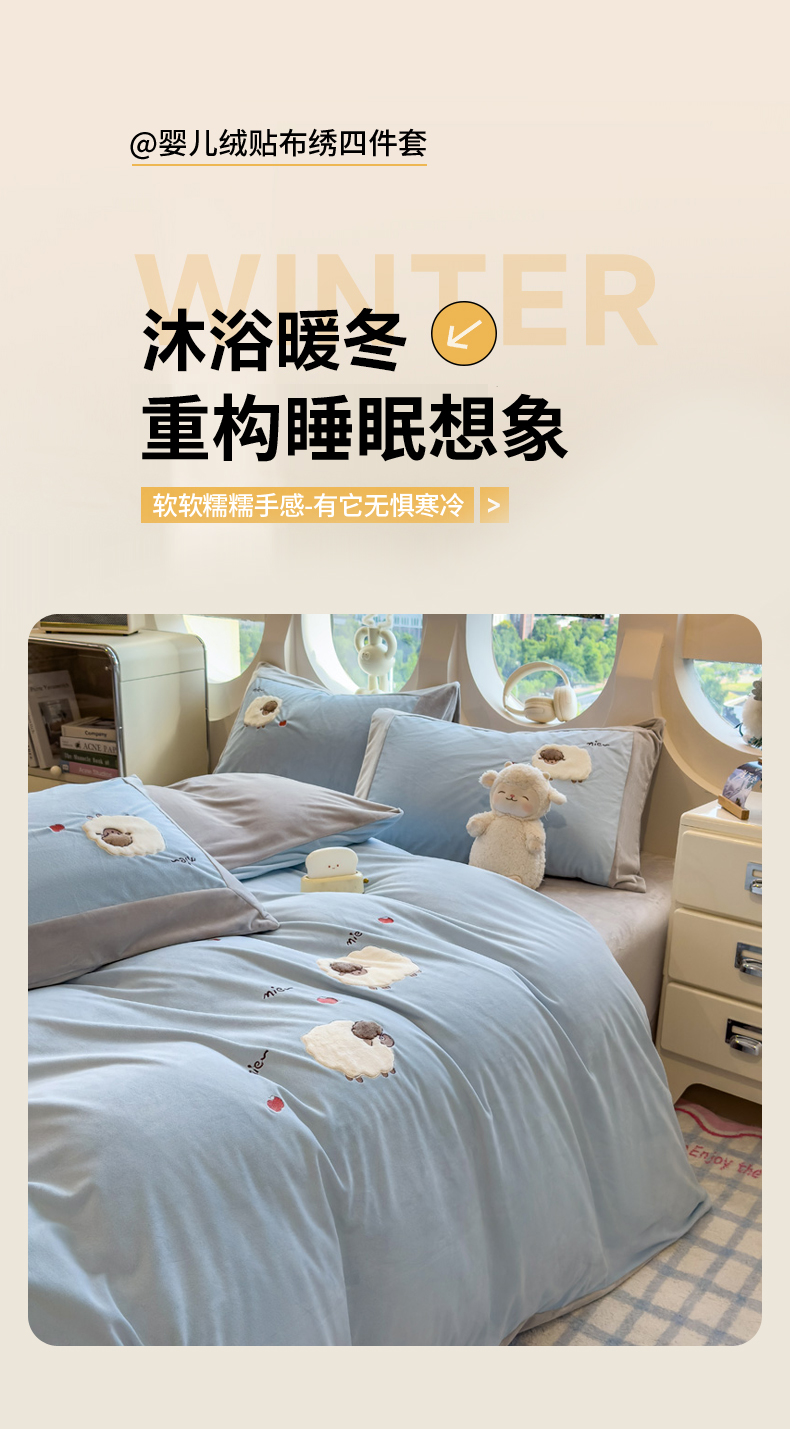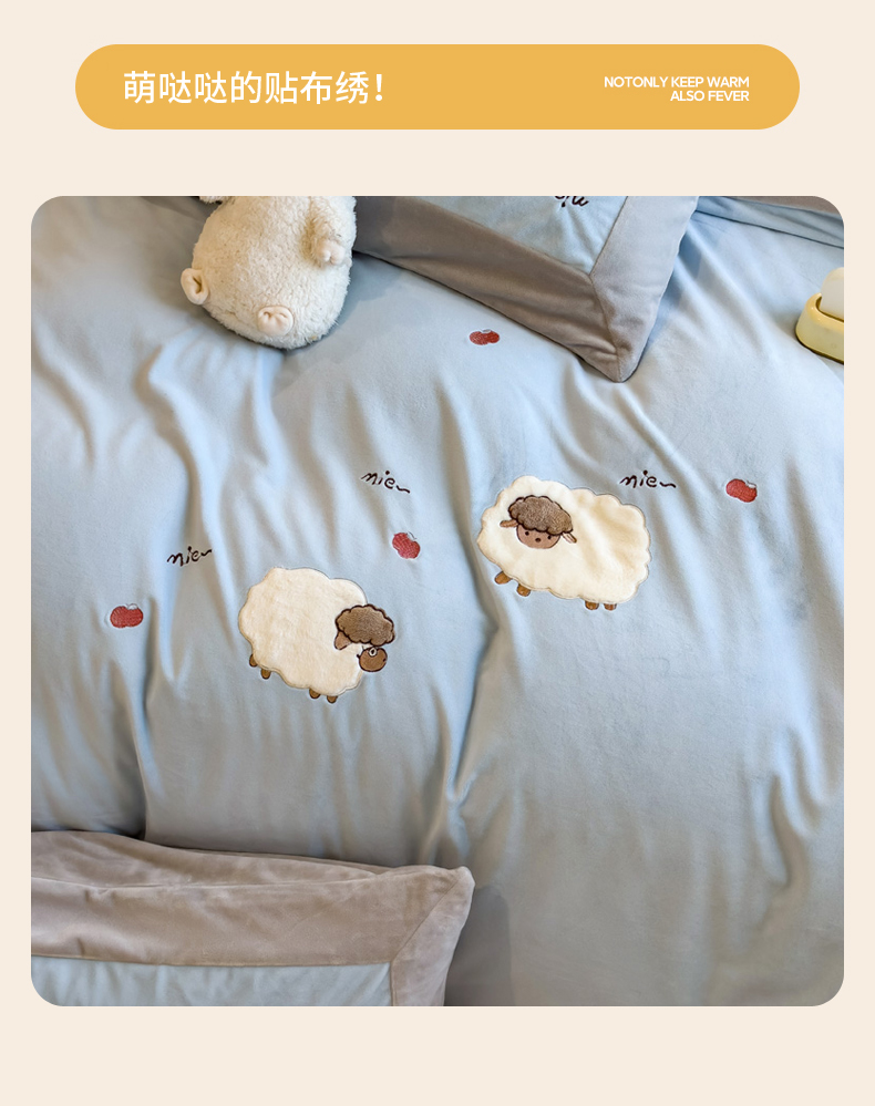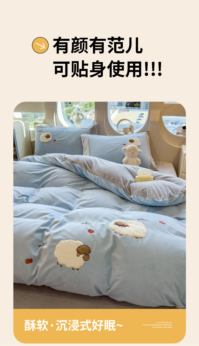 商品名称:席世家 2025新款婴儿绒贴布绣四件套 泡芙小羊