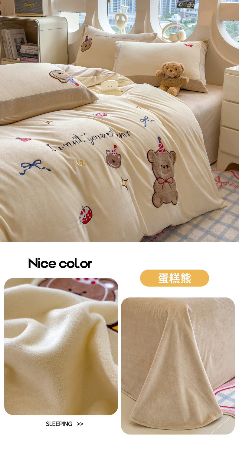 (总)席世家 2025新款婴儿绒贴布绣四件套,蛋糕熊,泡芙小羊,小女孩