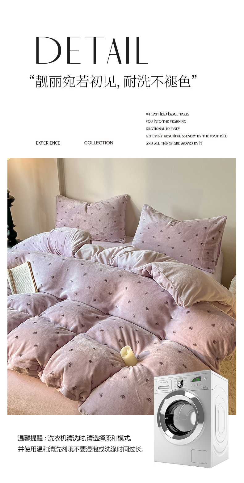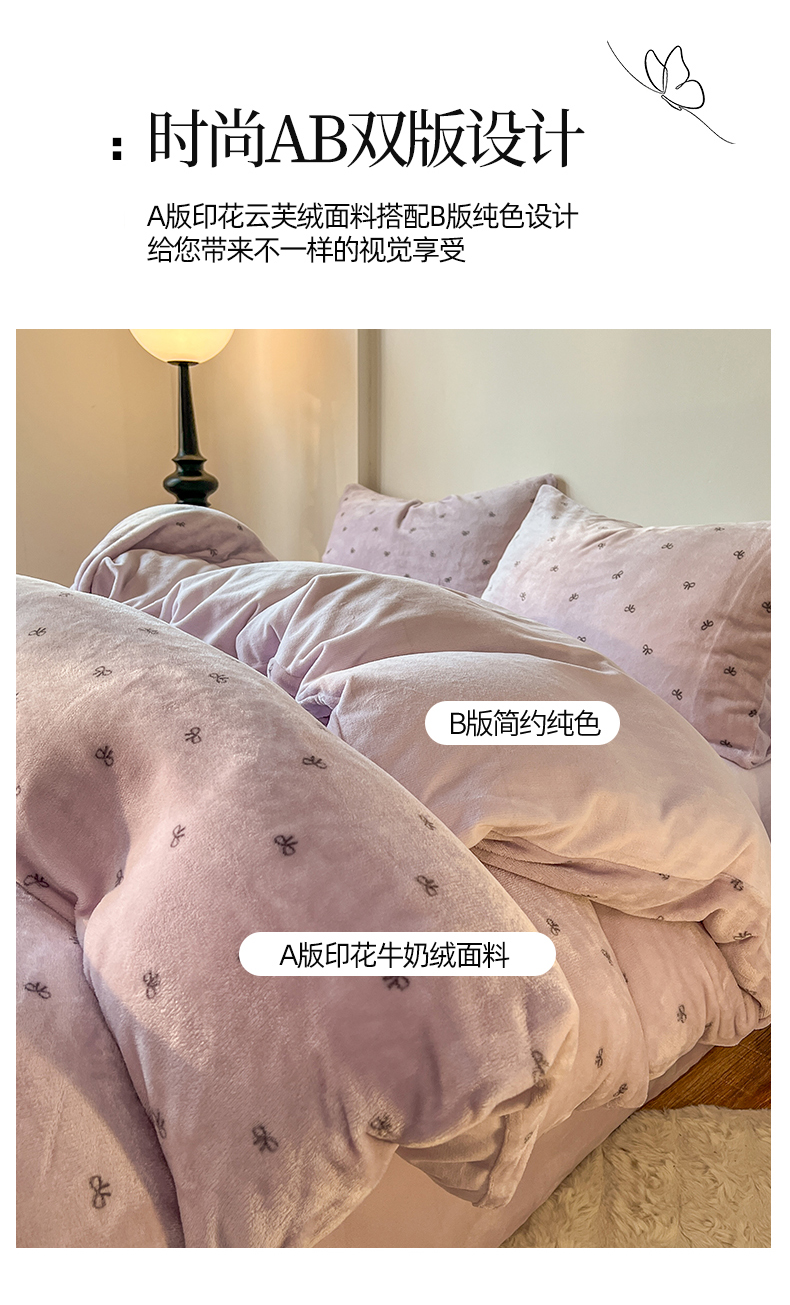 商品名称:思诺羽床笠 2025新款加厚牛奶绒印花四件套 紫花绒梦
