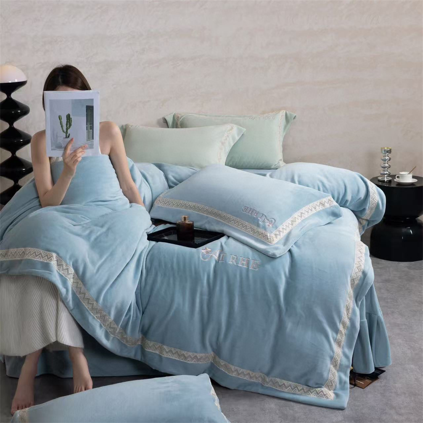 商品名称:(总)玖琳家纺 2025新款双面240克全消牛奶绒铂金牛奶绒四件套-罗伦丝系列