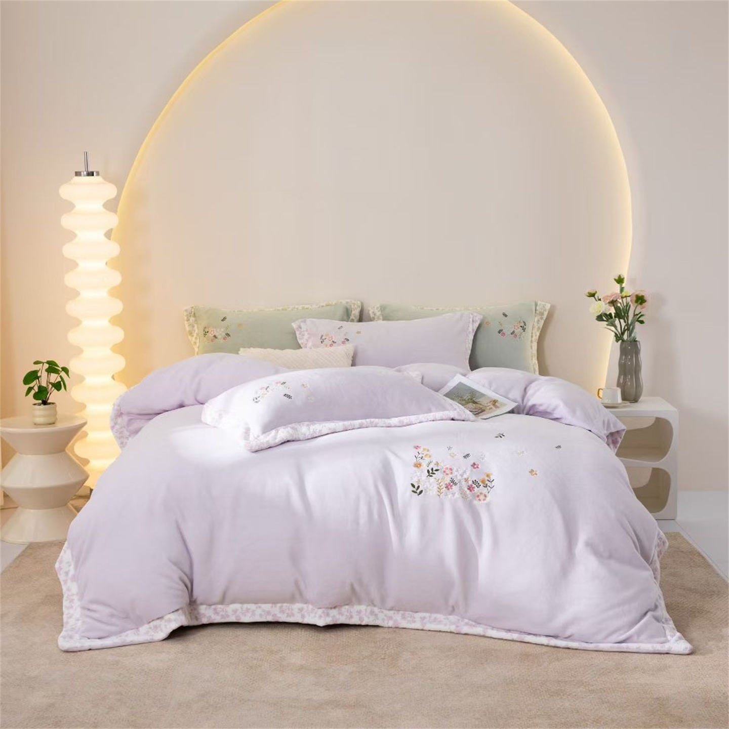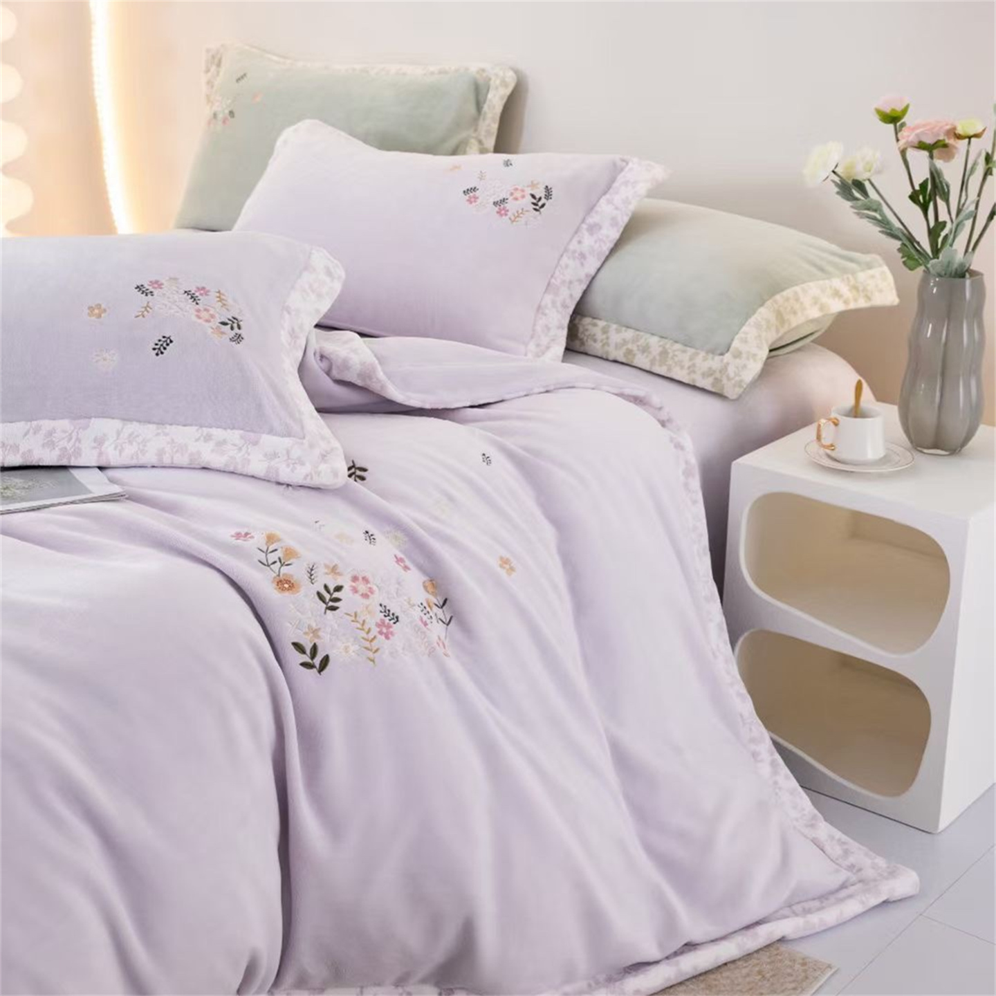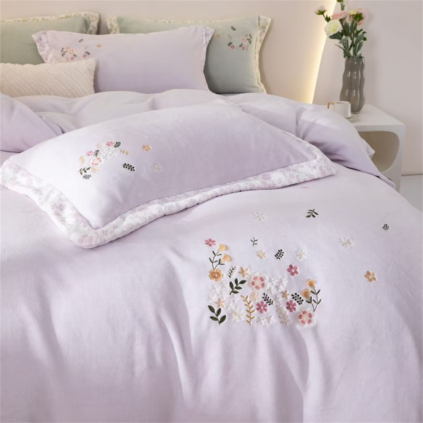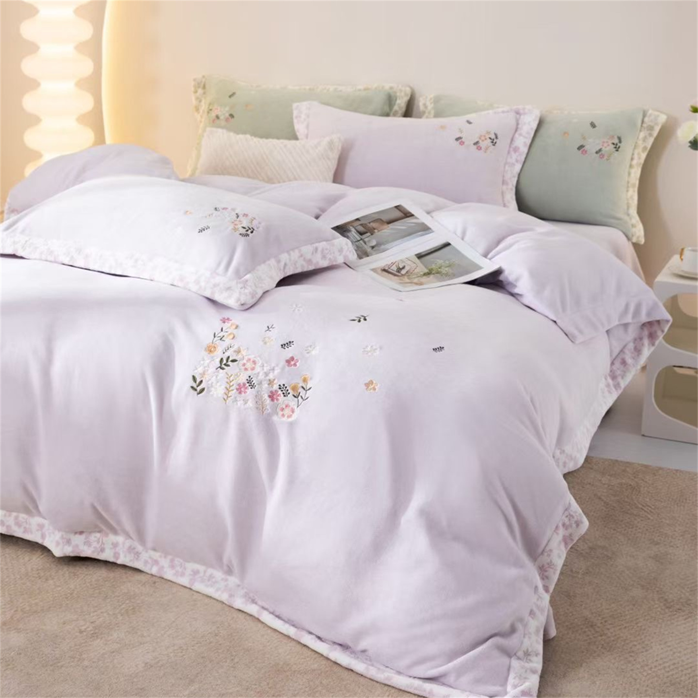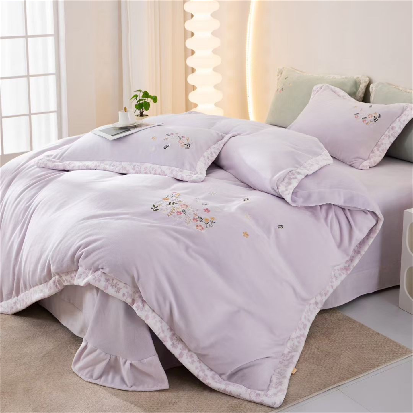 商品名称:玖琳家纺 2025新款双面240克全消牛奶绒铂金牛奶绒四件套-漫影系列 香芋紫