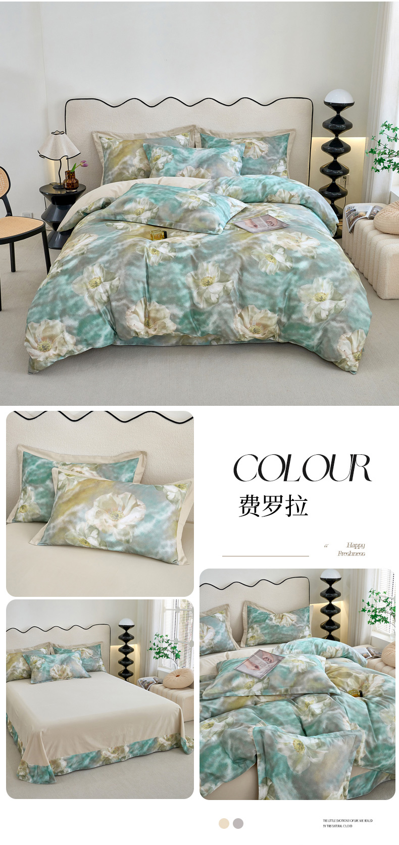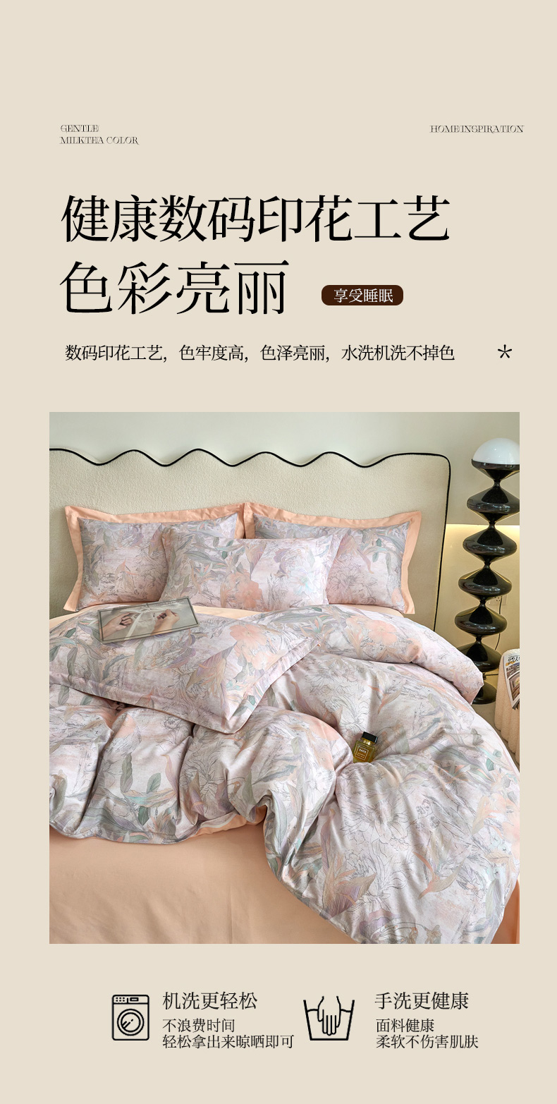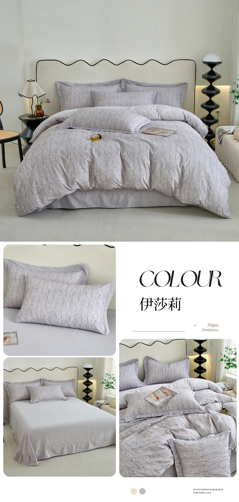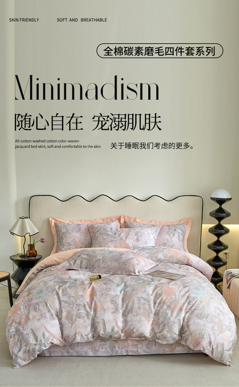 三沁家居 2025新款全棉碳素磨毛数码印花四件套 伊莎莉