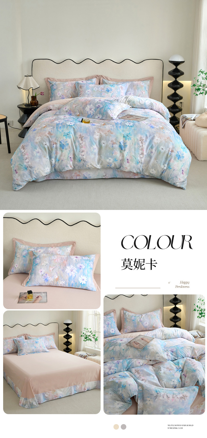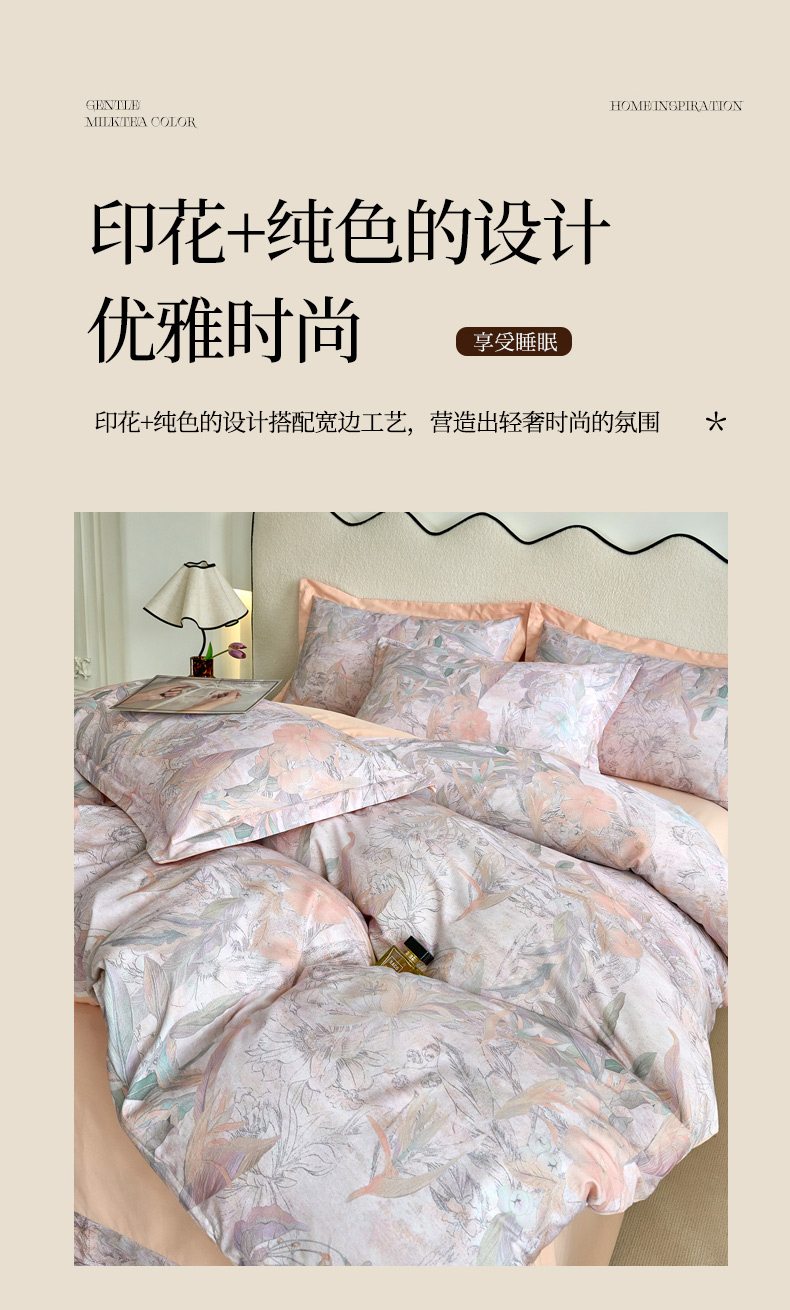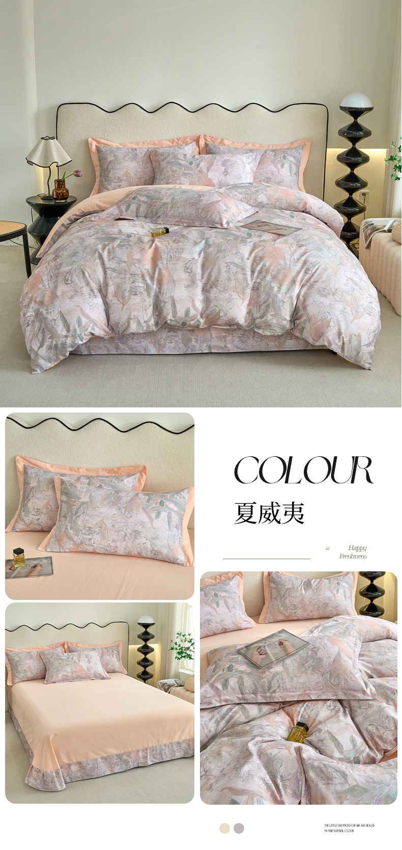 三沁家居 2025新款全棉碳素磨毛数码印花四件套 伊莎莉