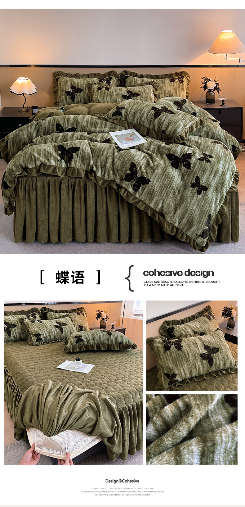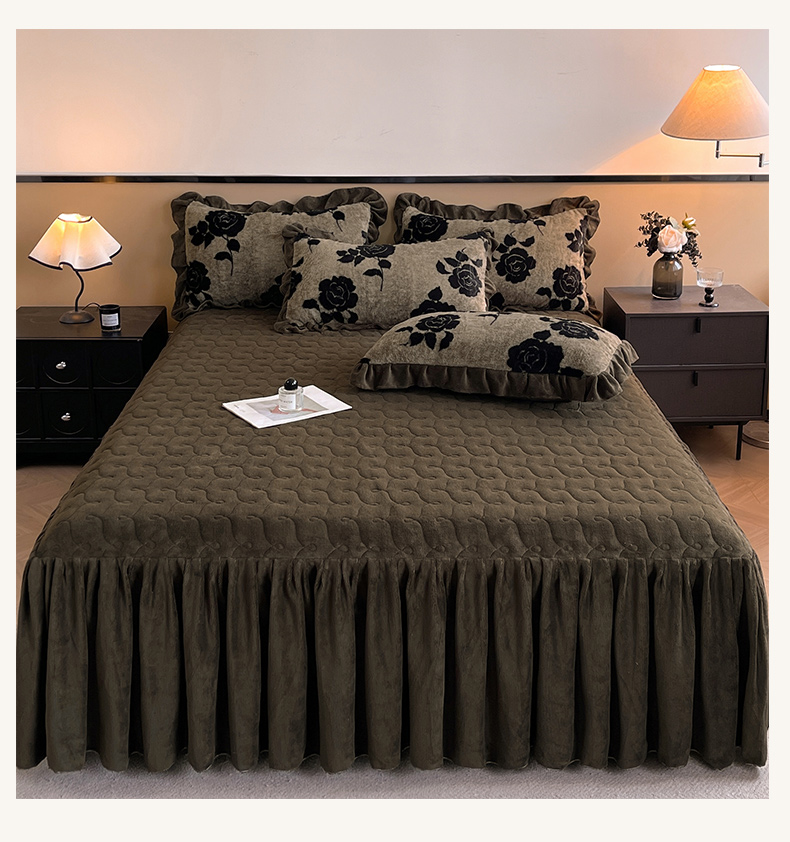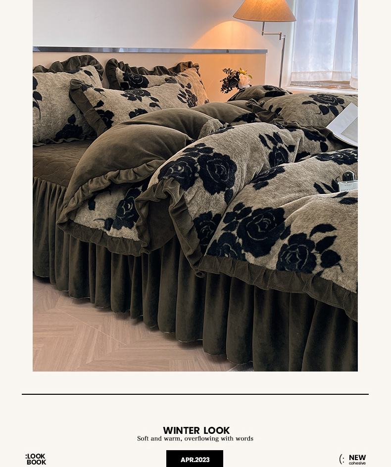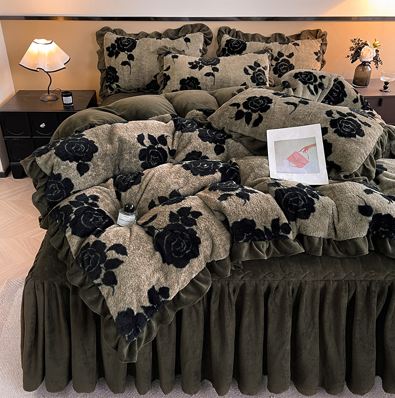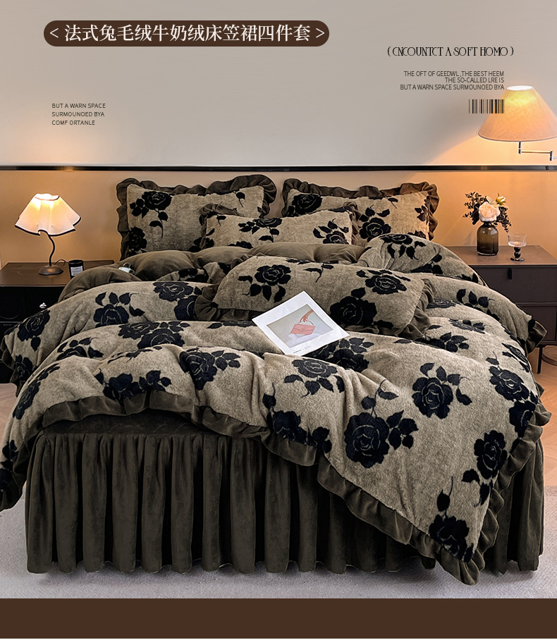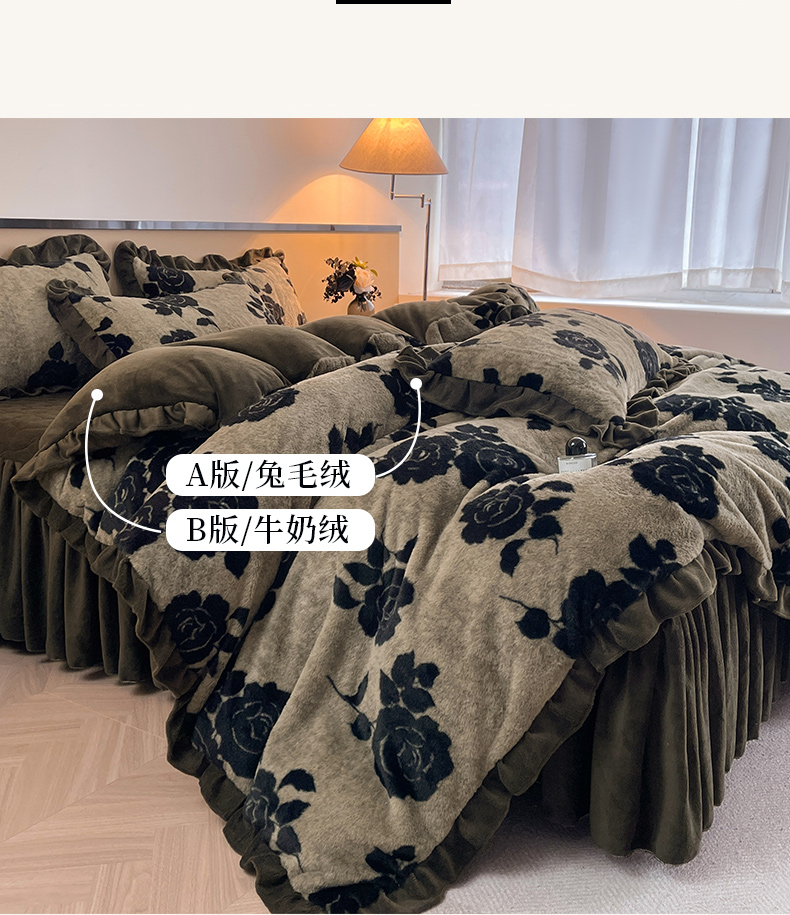 当前位置: 91家纺网 > 商品网购 > 床品套件 > 四件套 > 牛奶绒四件套 > 恋尚 2025新款懒兔毛绒夹棉牛奶绒床笠式床裙四件套(控价238元起) 爱意玫瑰