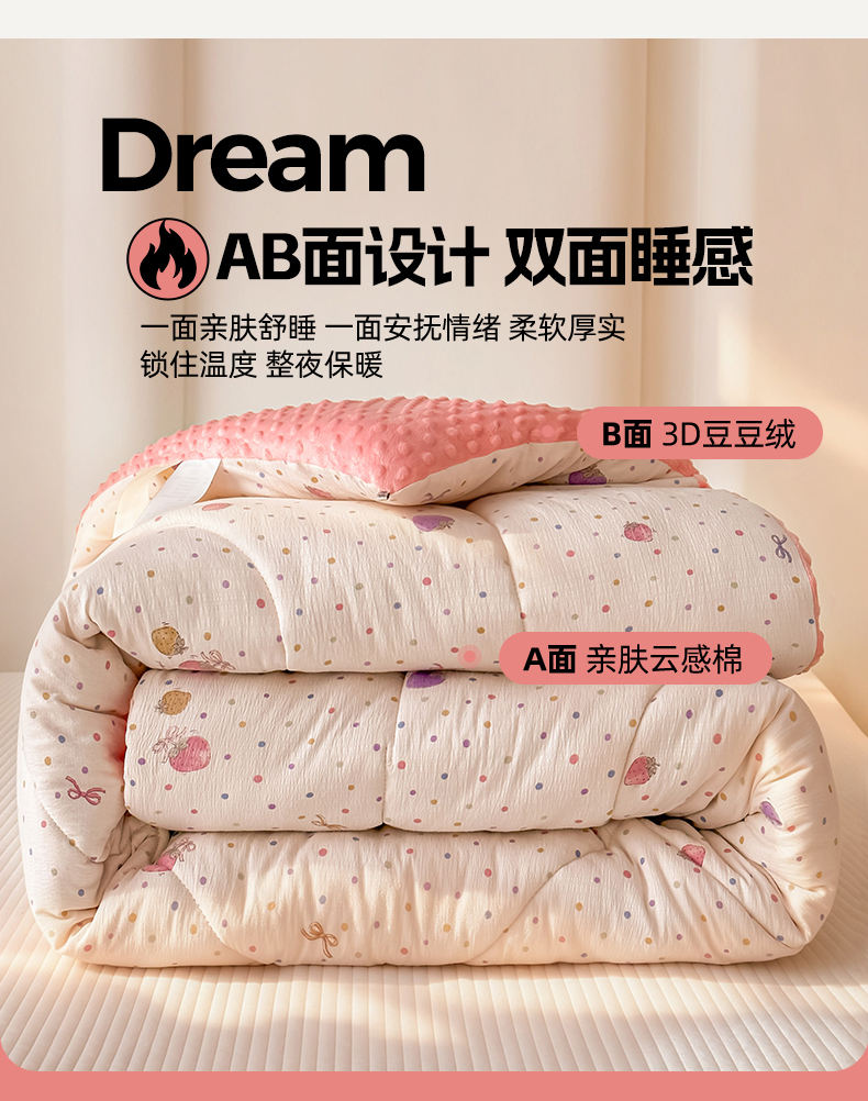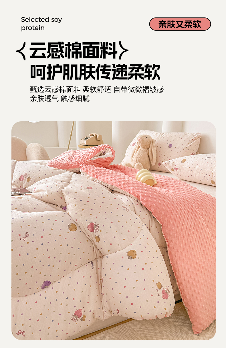 • 91家纺网 家纺一手货源 找家纺 丝芙妮家居(原乐视家纺) 2025新款云感棉豆豆被春秋被冬被被子被芯 草莓微甜