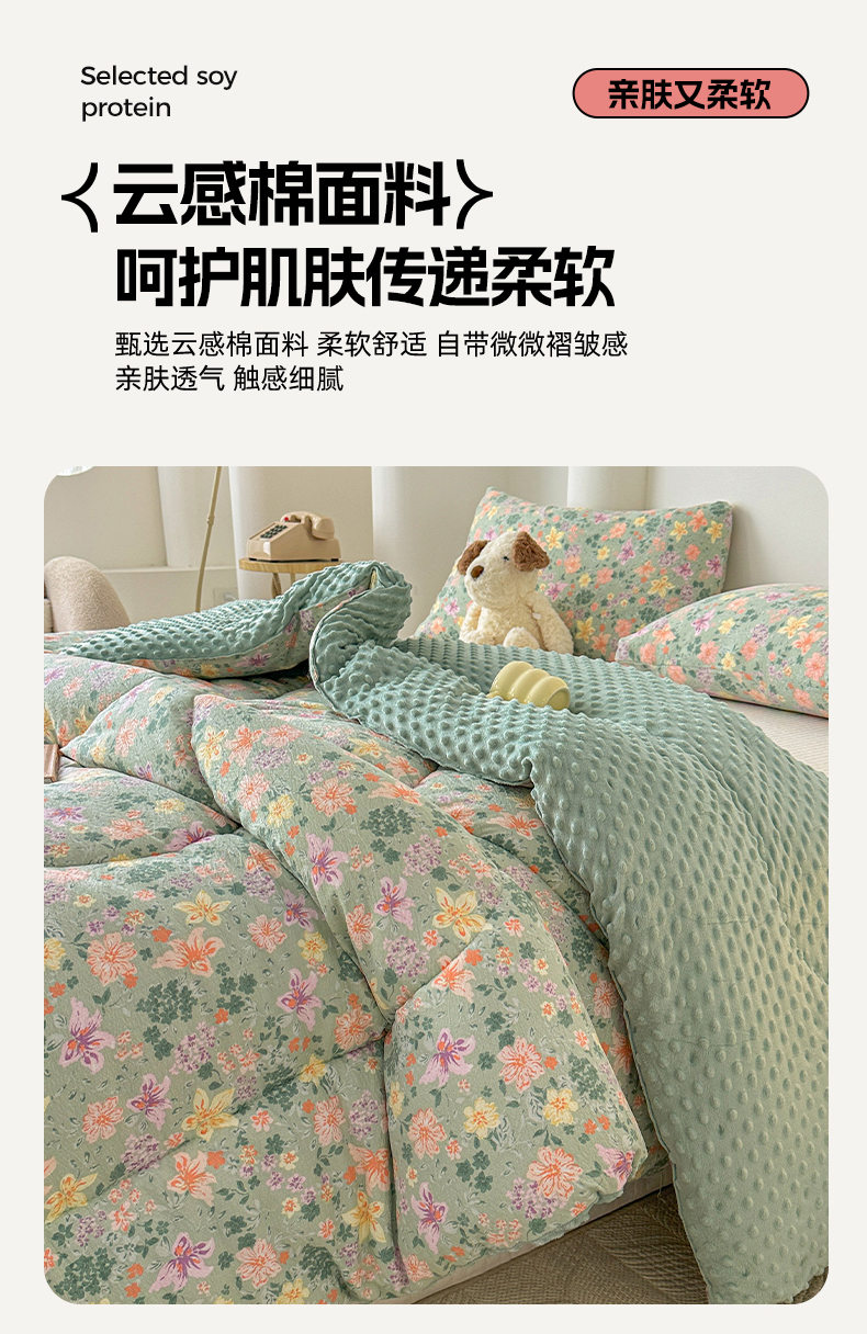 • 91家纺网 家纺一手货源 找家纺 丝芙妮家居(原乐视家纺) 2025新款云感棉豆豆被春秋被冬被被子被芯 午后时光