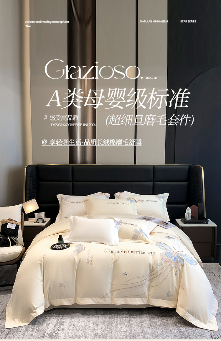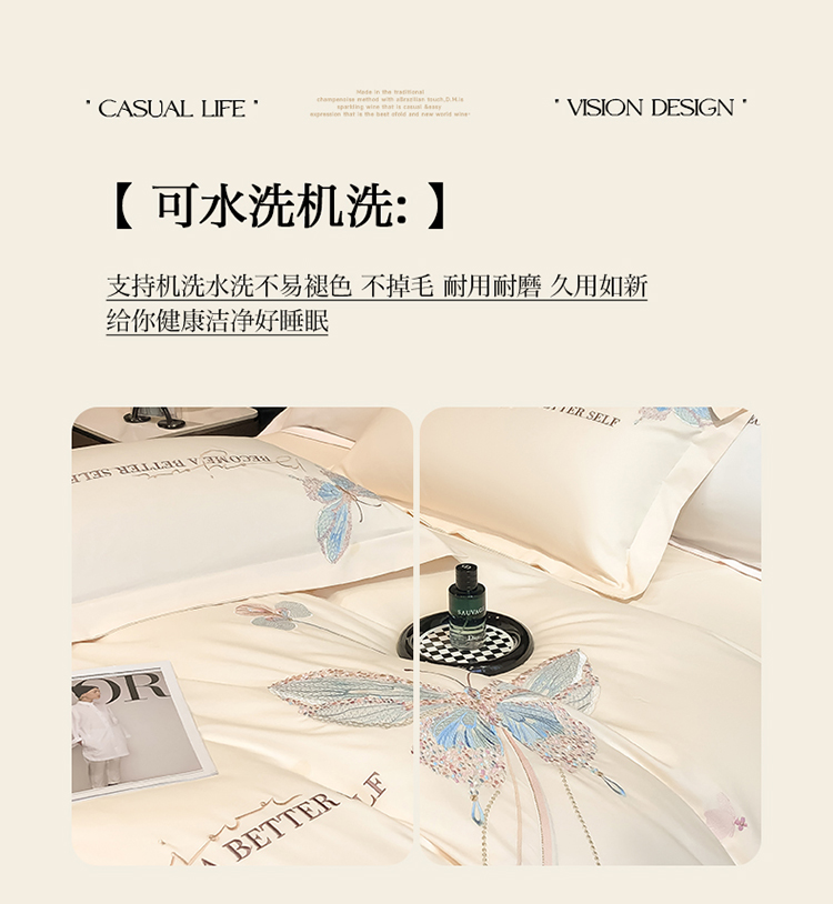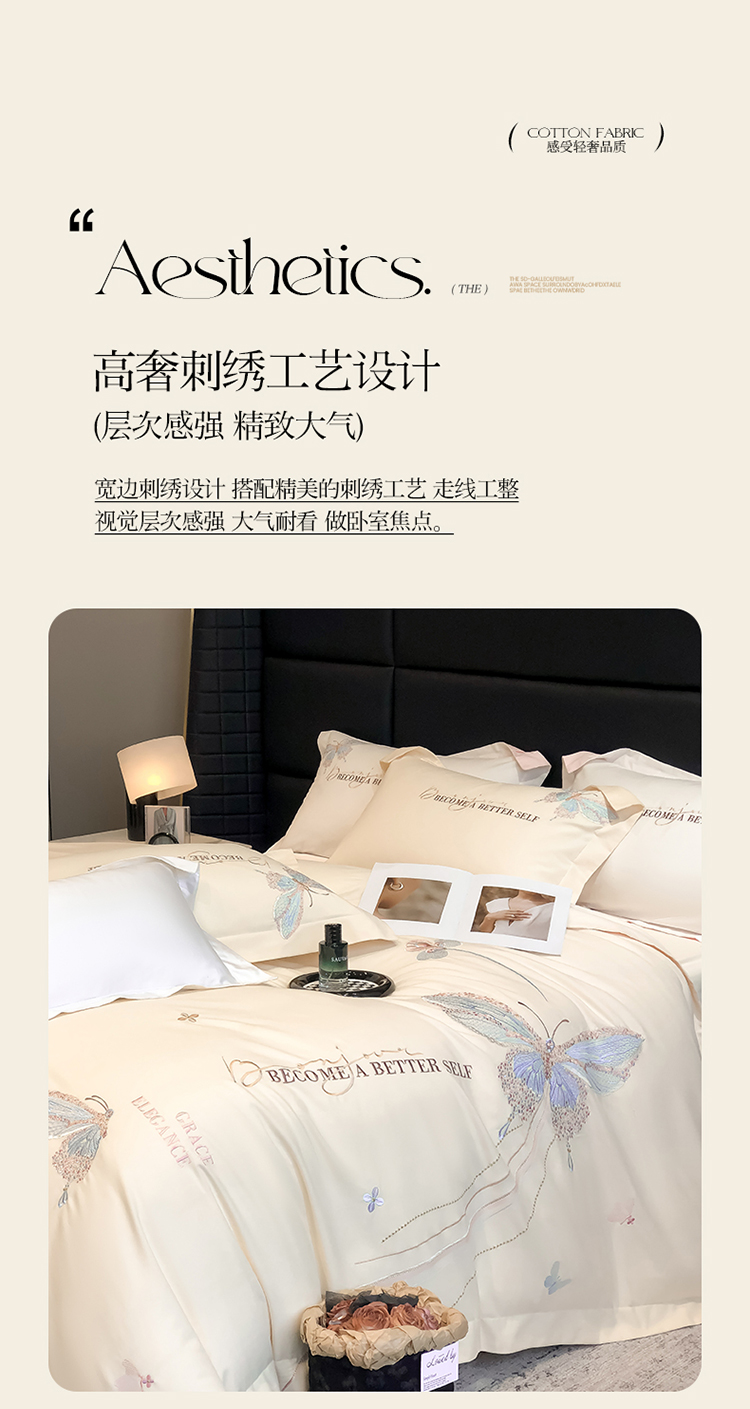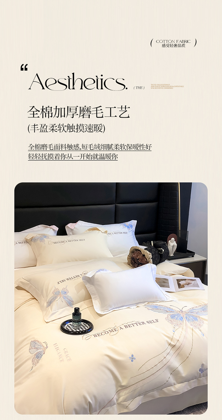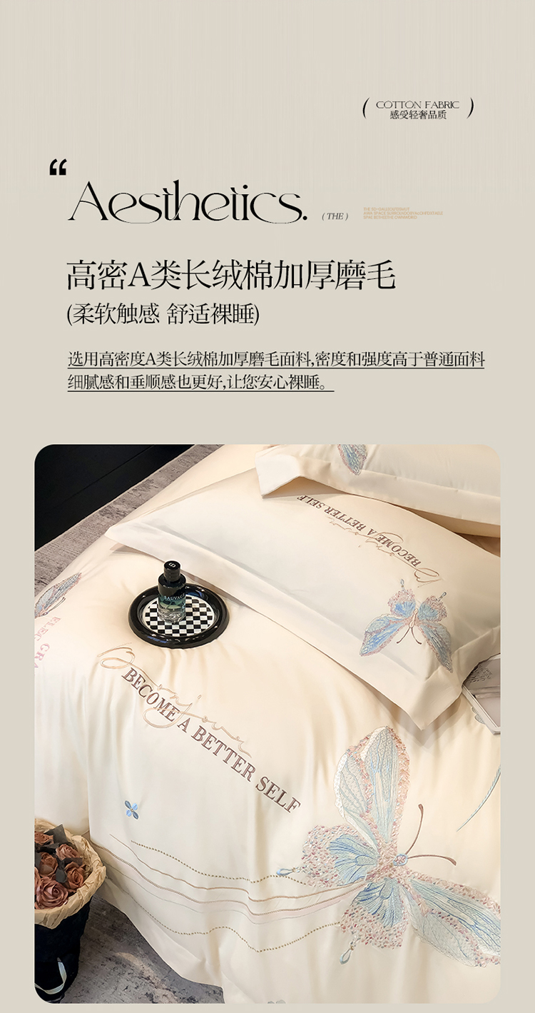 当前位置: 91家纺网 > 商品网购 > 床品套件 > 四件套 > 长绒棉四件套 > 高档礼盒装超细旦超柔长绒棉磨毛刺绣四件套秋冬加厚100%纯棉全棉床品 绮蝶-奶茶杏-A类超细旦长绒棉磨毛