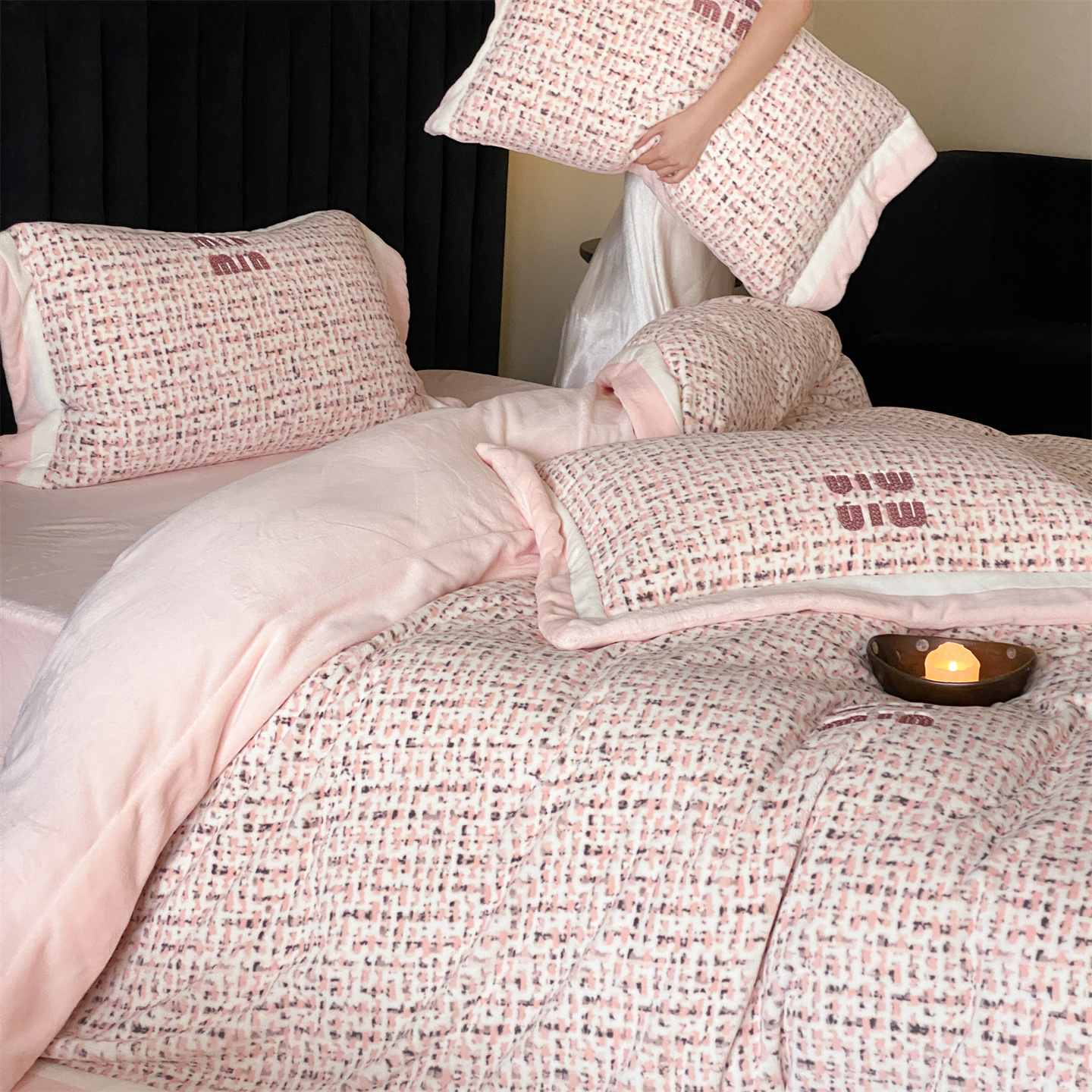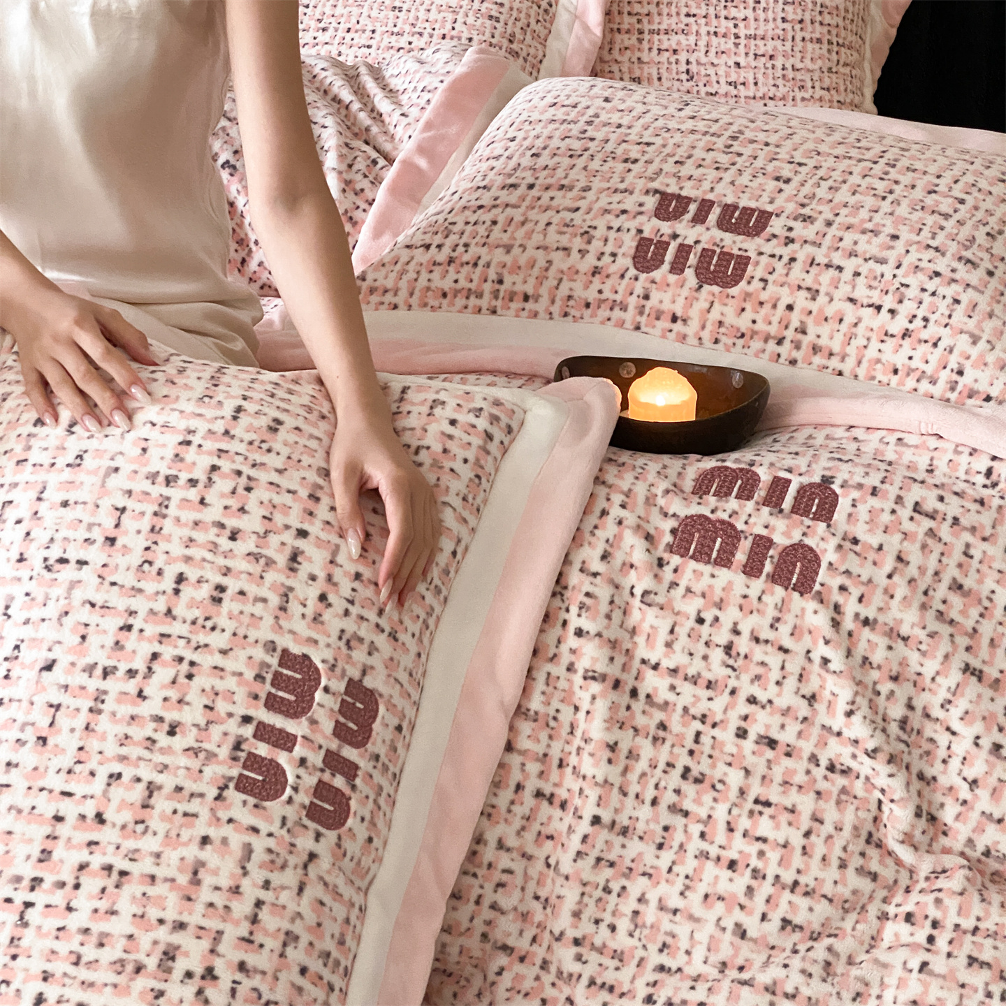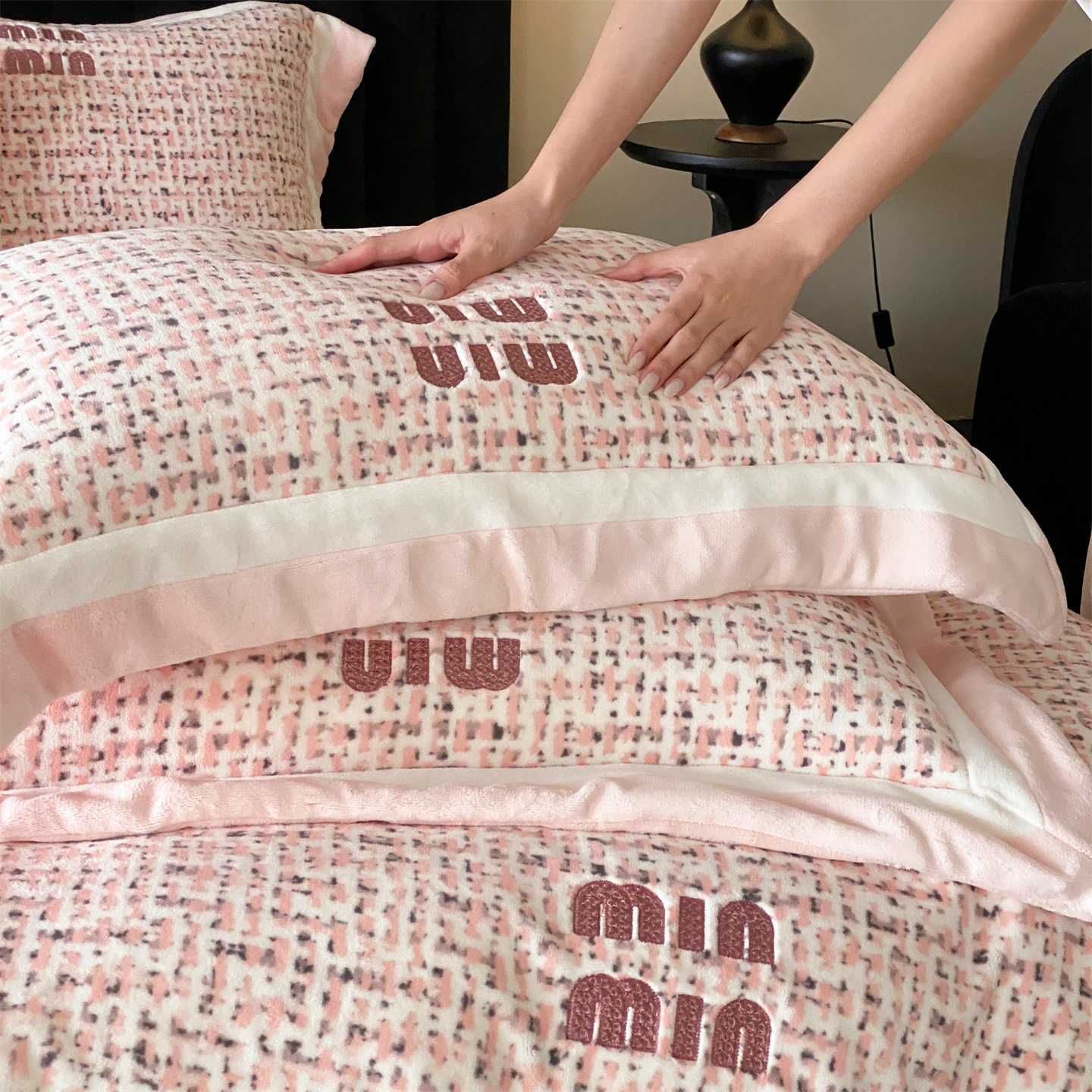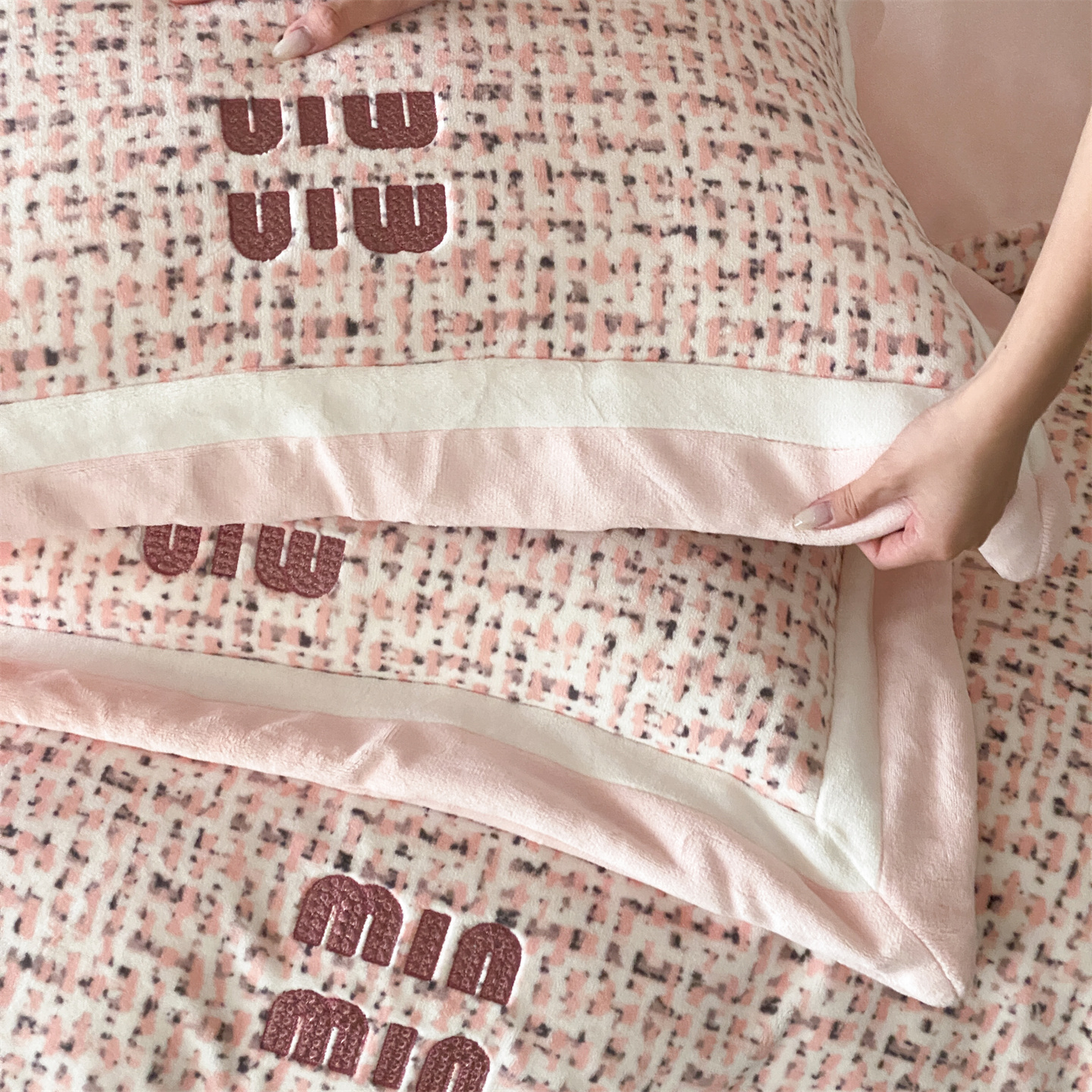 (总)馨蕊家居 2025新款意大利进口高精密刺绣拼角工艺秋冬法式高奢雪貂绒系列-绒雪芙 会员-10【券后控价358/378】,绒雪芙-奶咖,绒雪芙-蔷薇粉,绒雪芙-婉若紫,绒雪芙-月光白