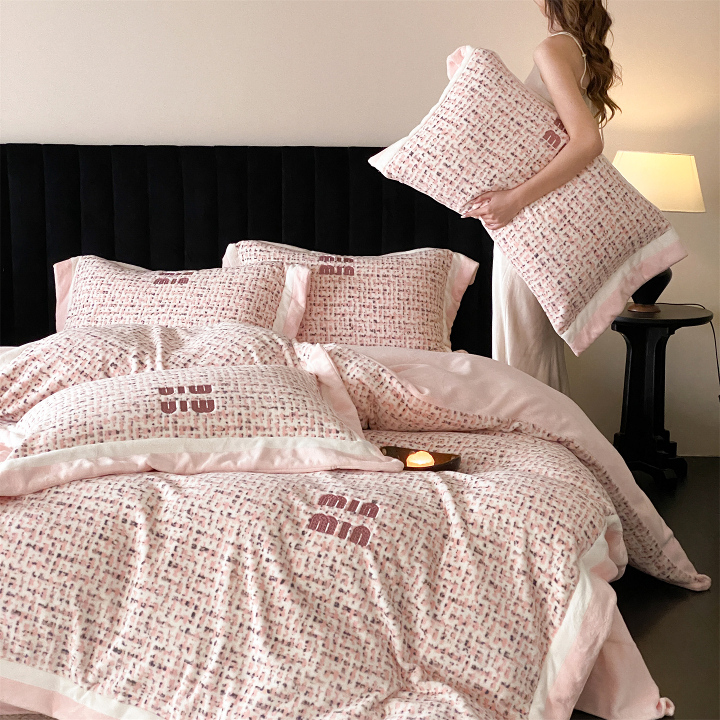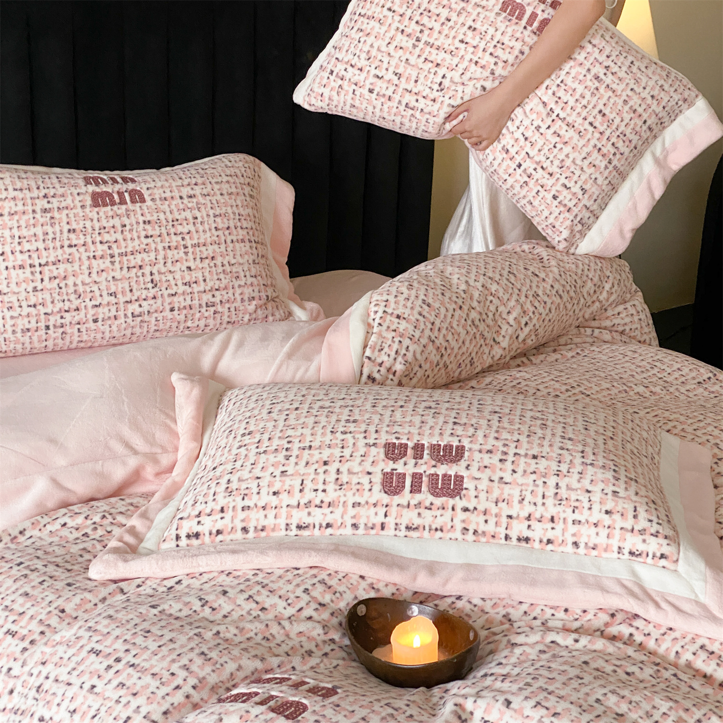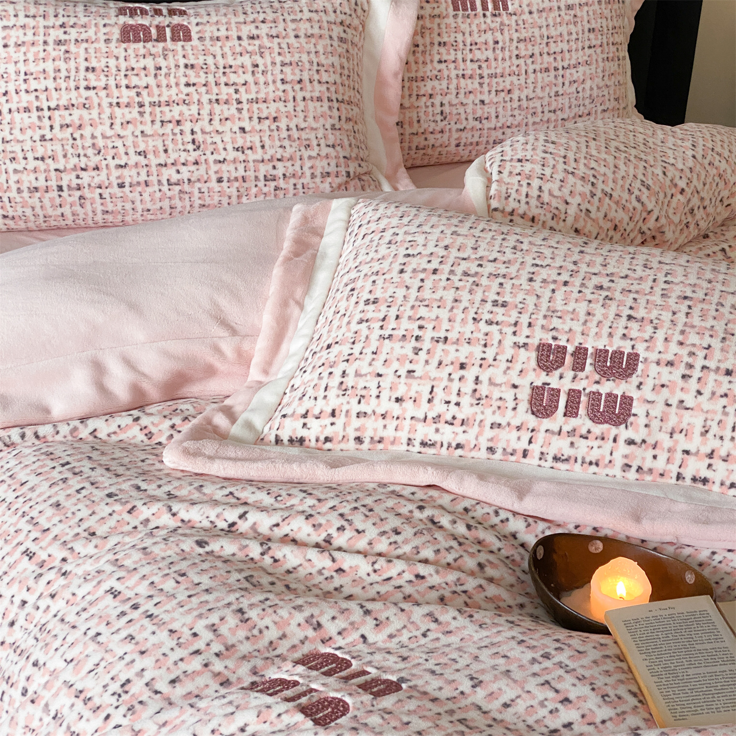 (总)馨蕊家居 2025新款意大利进口高精密刺绣拼角工艺秋冬法式高奢雪貂绒系列-绒雪芙 会员-10【券后控价358/378】,绒雪芙-奶咖,绒雪芙-蔷薇粉,绒雪芙-婉若紫,绒雪芙-月光白