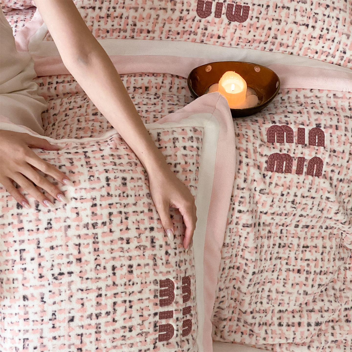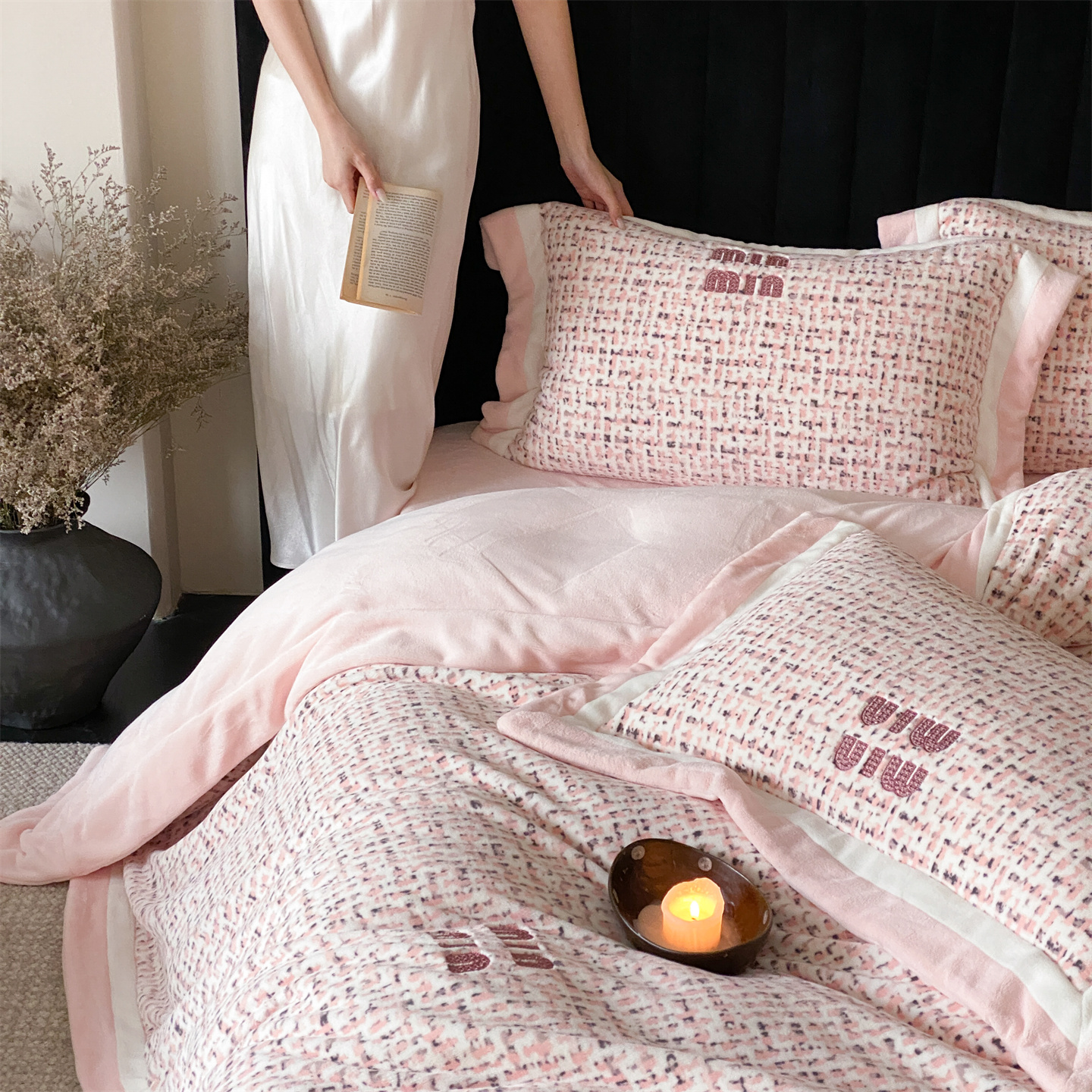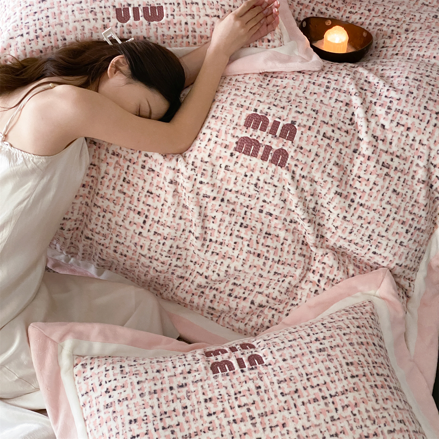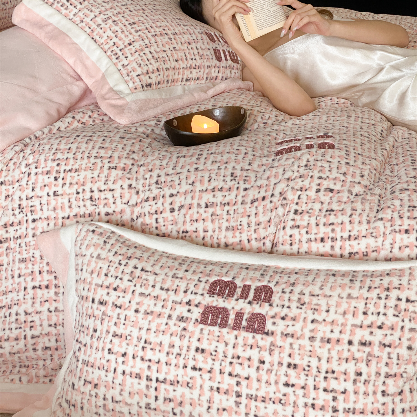 (总)馨蕊家居 2025新款意大利进口高精密刺绣拼角工艺秋冬法式高奢雪貂绒系列-绒雪芙 会员-10【券后控价358/378】,绒雪芙-奶咖,绒雪芙-蔷薇粉,绒雪芙-婉若紫,绒雪芙-月光白
