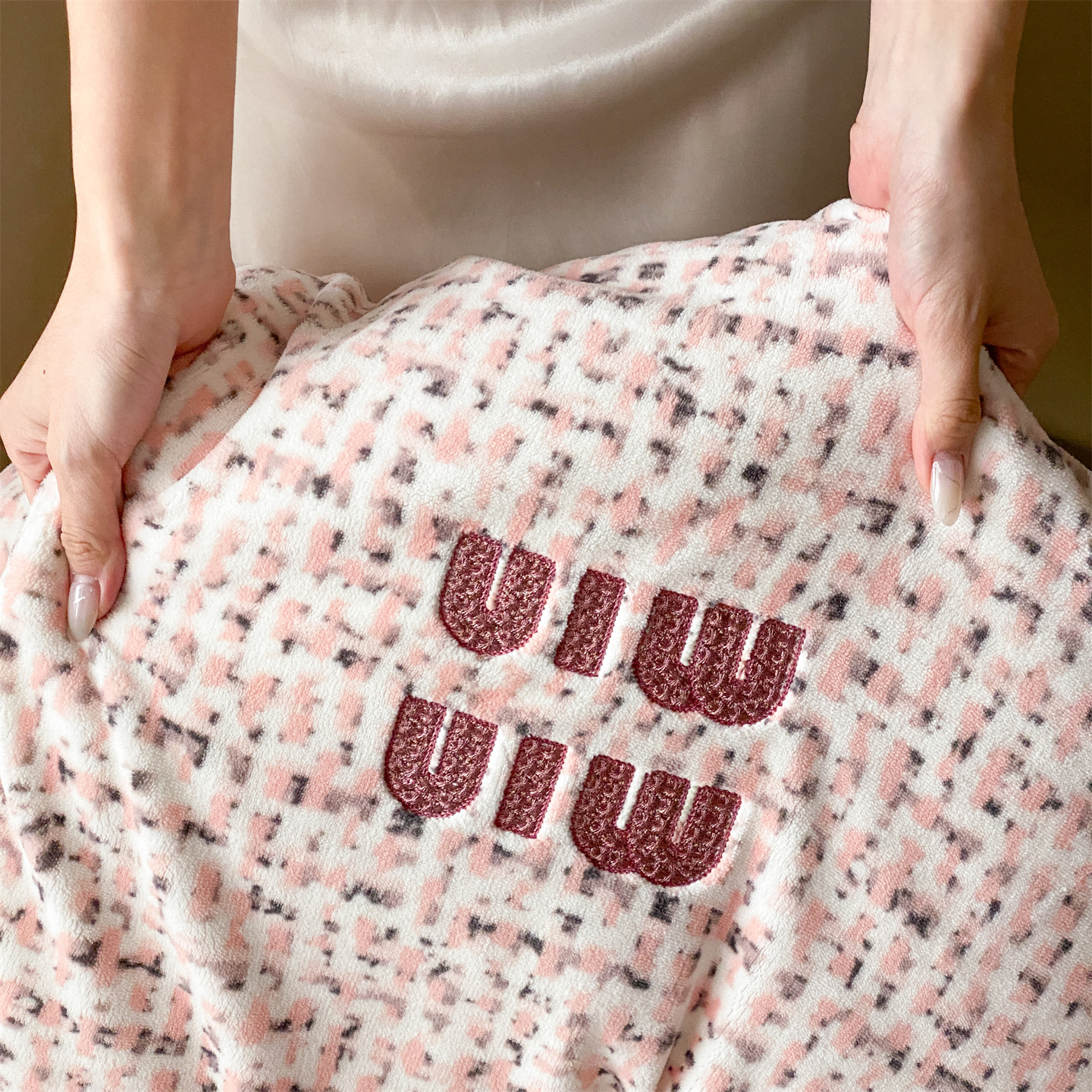 商品名称:馨蕊 2025新款意大利进口高精密刺绣拼角工艺秋冬轻奢煦暖绒系列-绒苏珊 会员-10【券后控价358/378】 绒苏珊-蔷薇粉