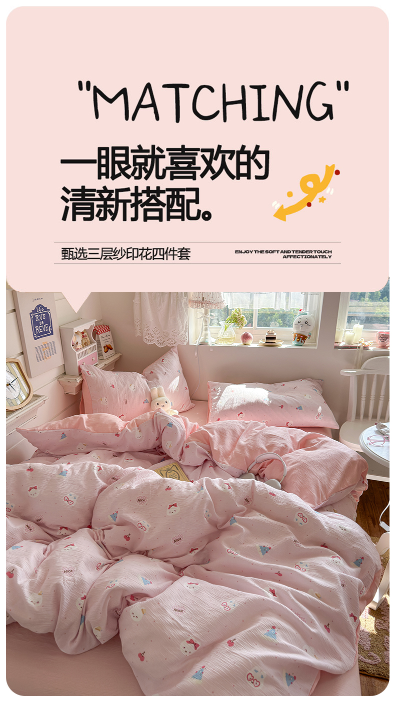 当前位置: 91家纺网 > 商品网购 > 床品套件 > 四件套 > 其它四件套 > 玉海棠家纺 2025新款甄选三层纱印花四件套 小美