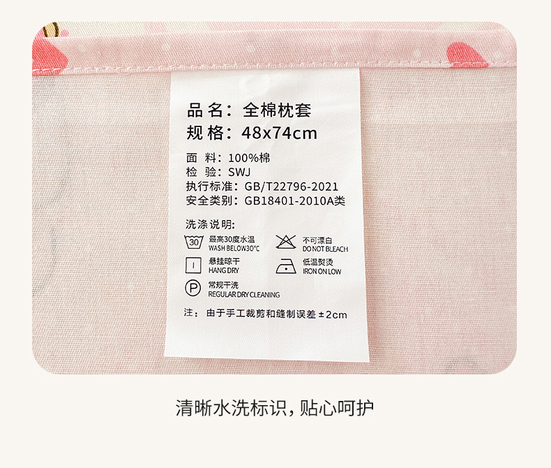 商品名称:拾物记 2026新款第一批12868A类全棉单品枕套系列 爱心喵