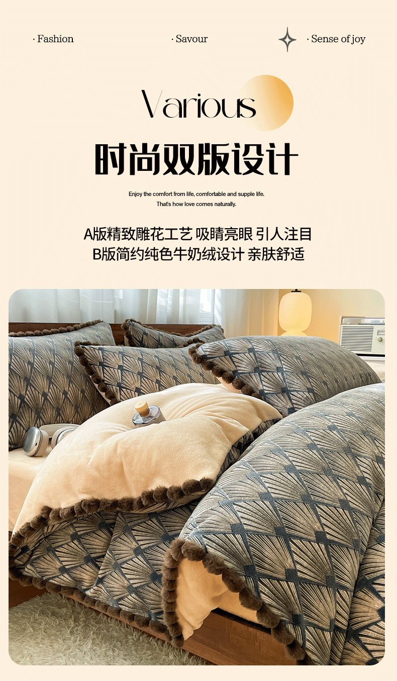 (总)羚羊语家纺 2025新款浮雕绒轻法式牛奶绒四件套雕花绒复古ins风立体着色烂花牛奶绒提花床单三件套-香榭落叶,香榭落叶-花烬影,香榭落叶-小夜曲,香榭落叶-塞纳吻,香榭落叶-巴洛克,香榭落叶-浮梦绘,香榭落叶-洛丽纱