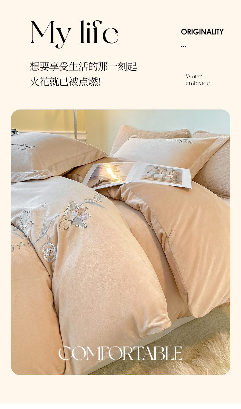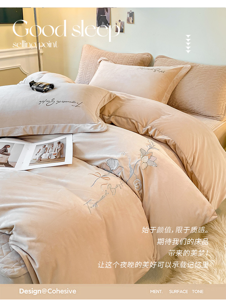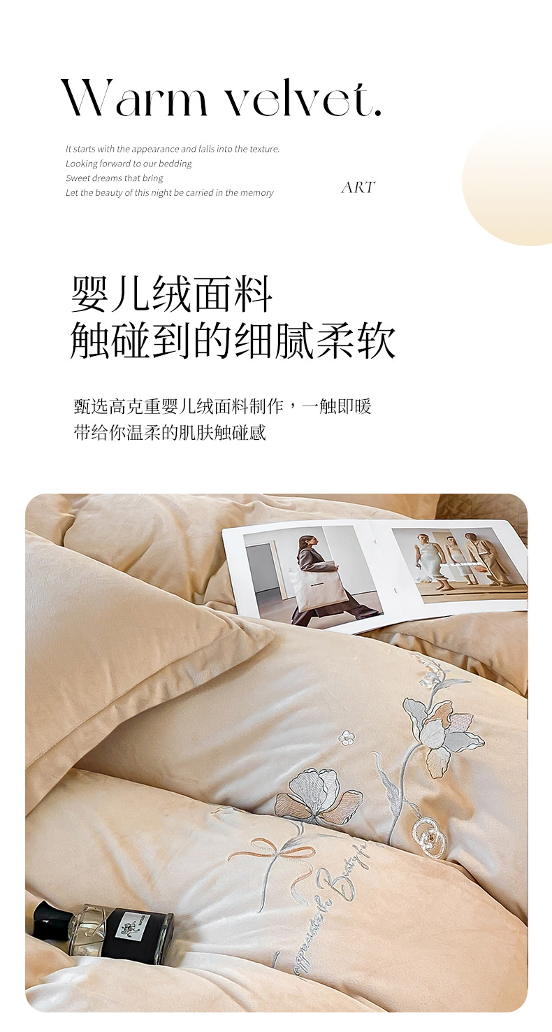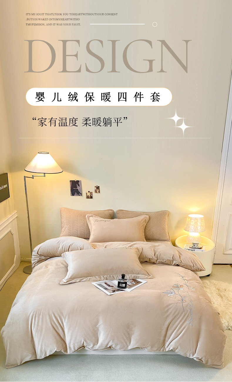 (总)宝宝绒婴儿绒四件套刺绣纯色四件套床单床笠牛奶绒四件套,蓝拼卡其,灰色,蓝色,粉色,紫色,卡其,豆沙