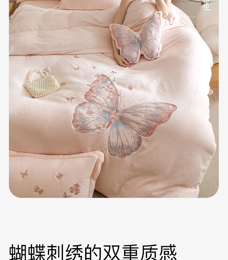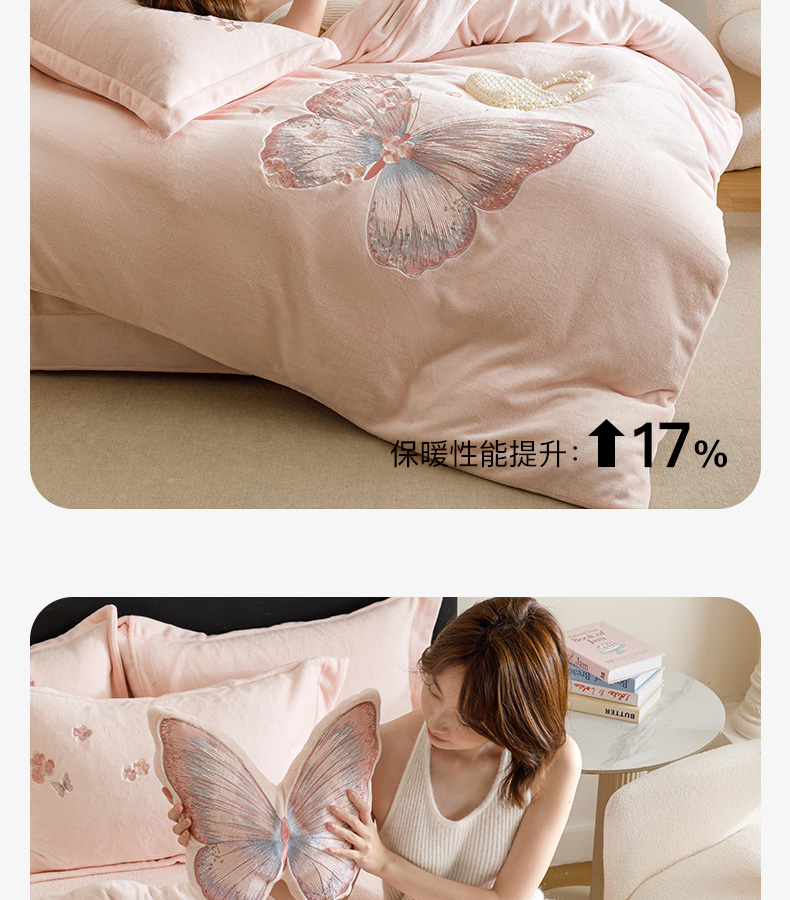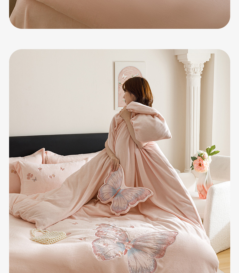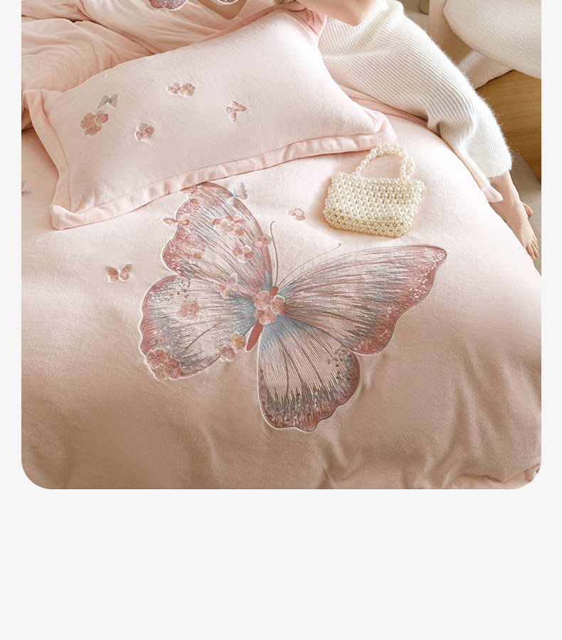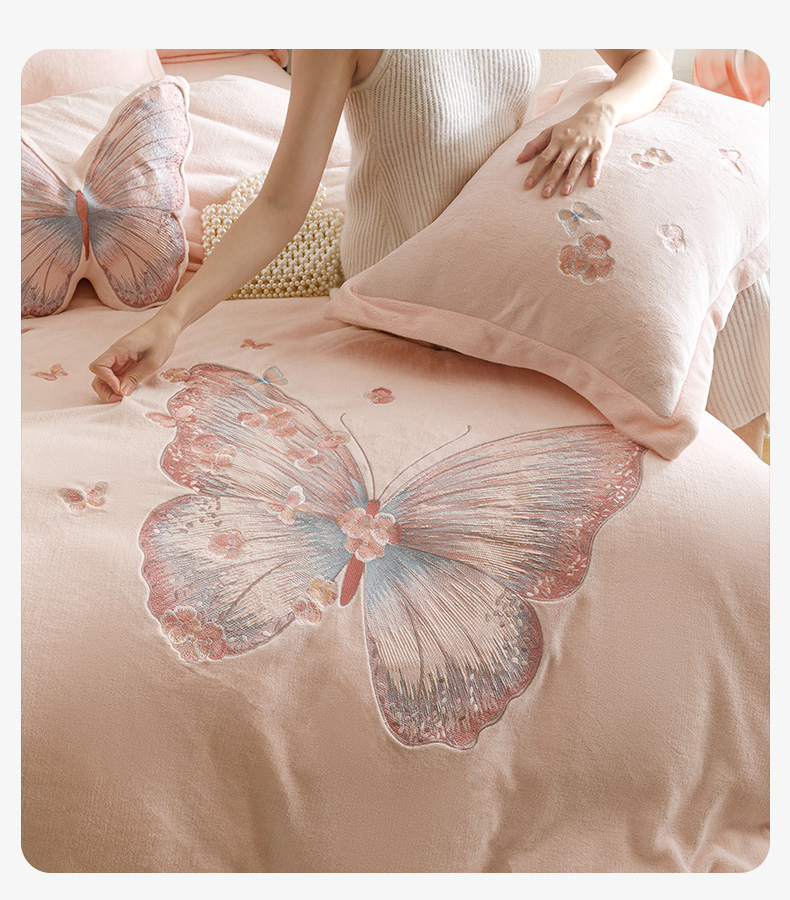 商品名称:(总)卡姿家纺 2025秋冬德国奶芙绒蝴蝶刺绣— 樱花蝴蝶