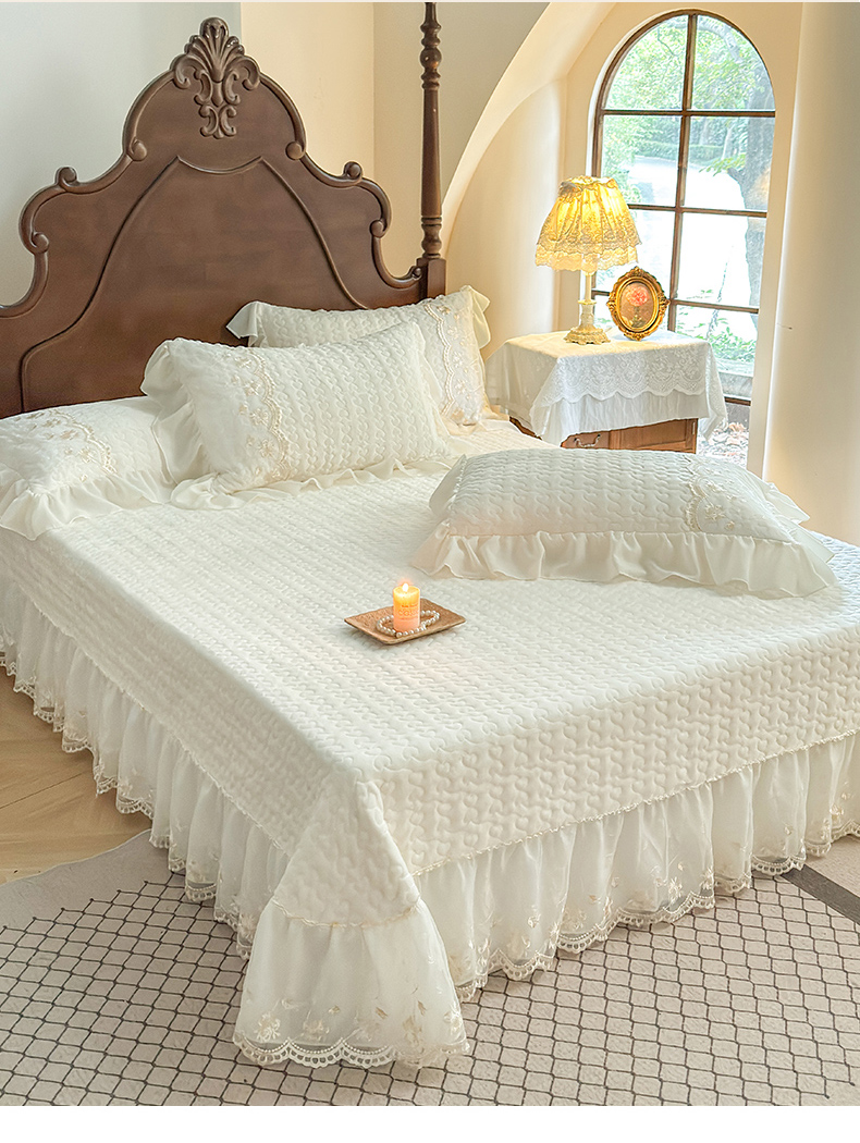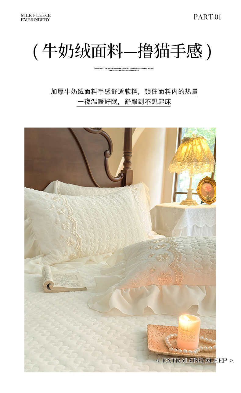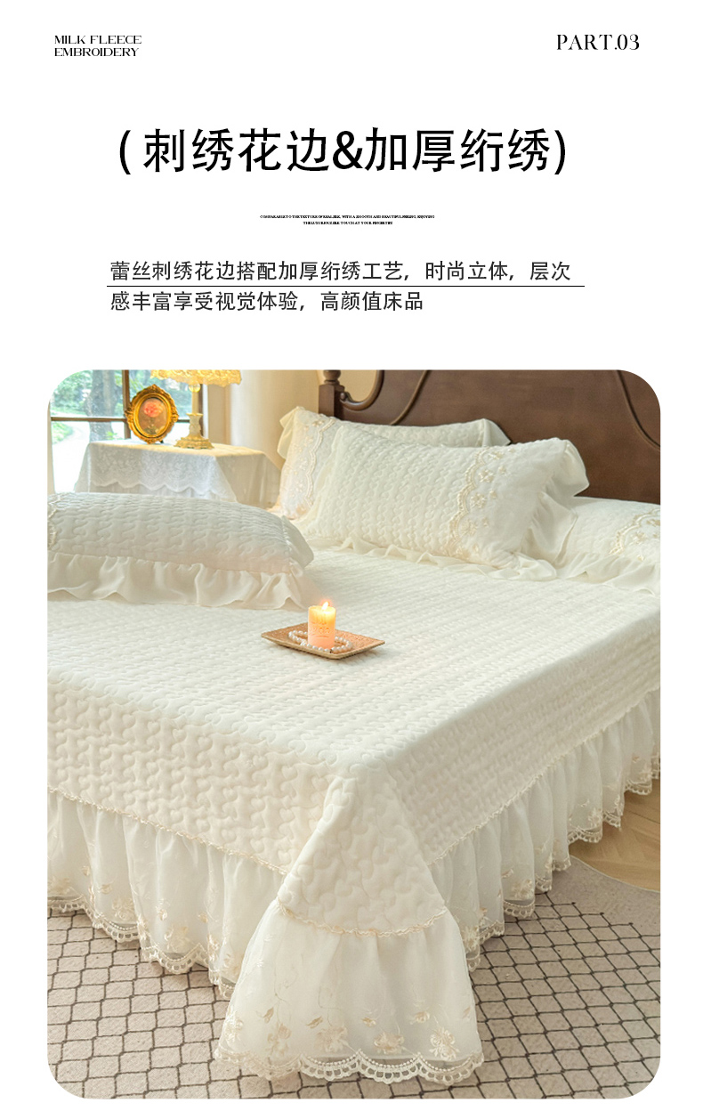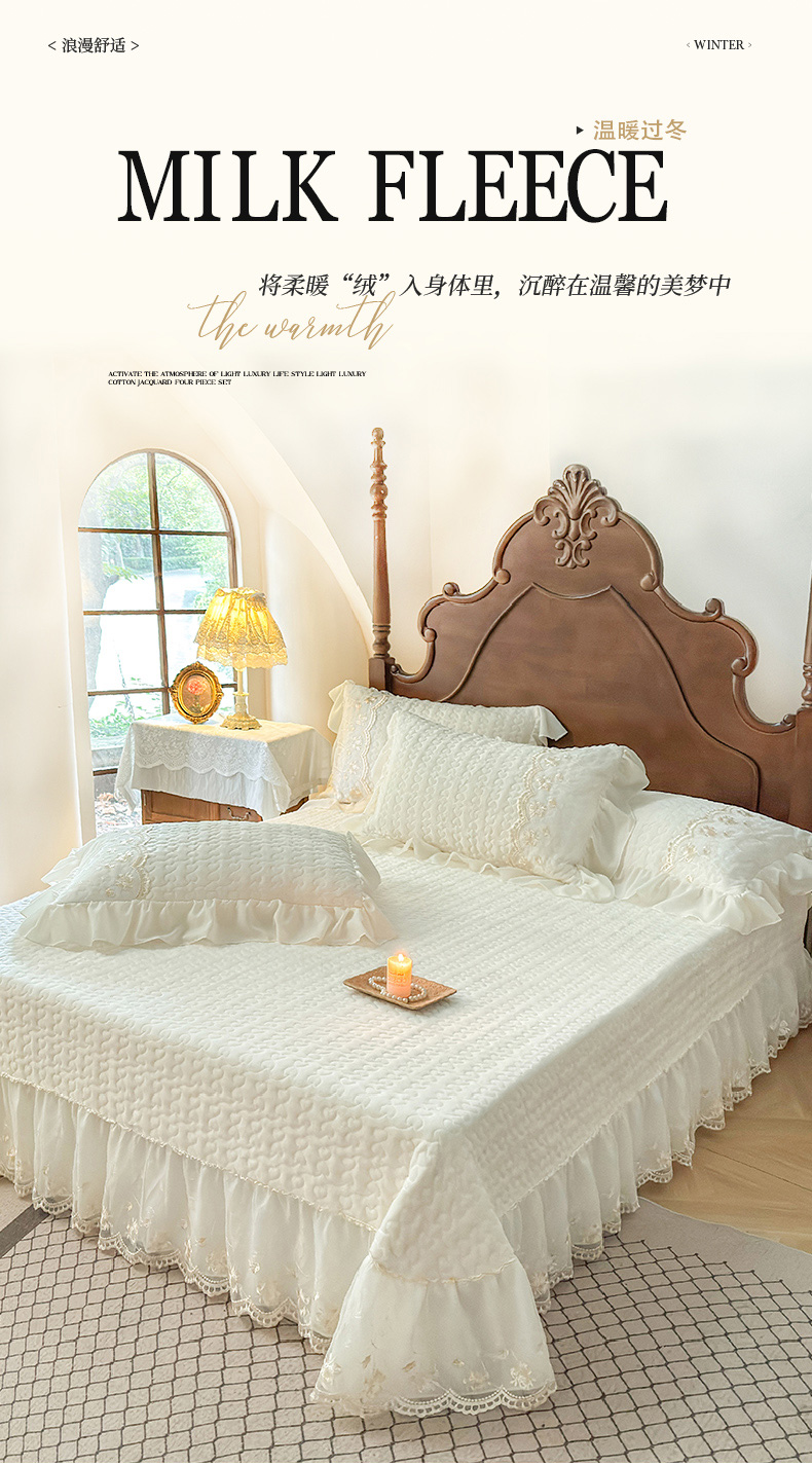商品名称:乐朵家居 2025新款 左岸玫瑰 牛奶绒 夹棉床盖 -奶白