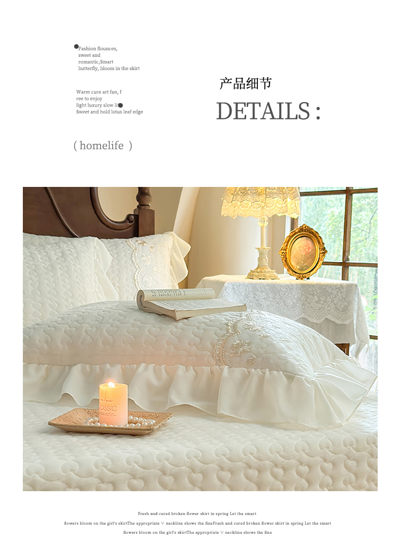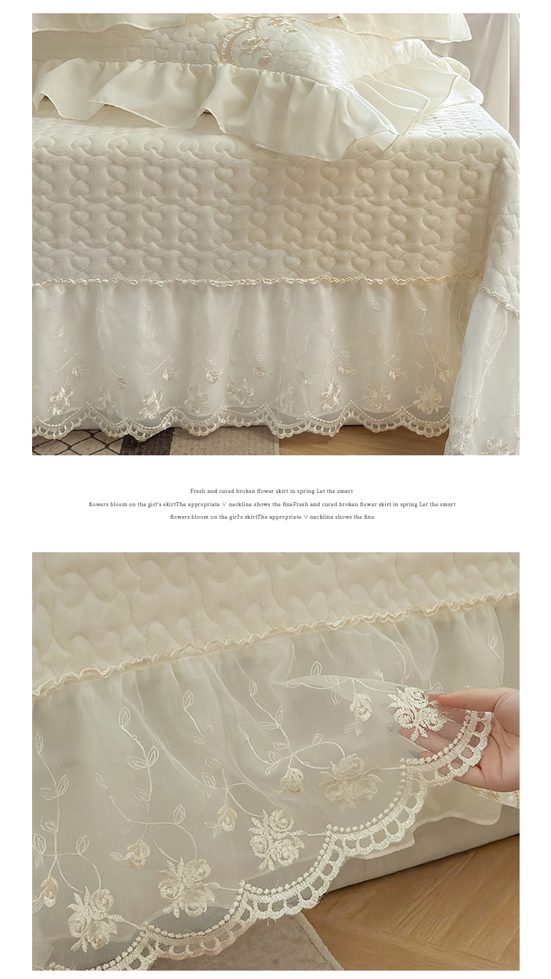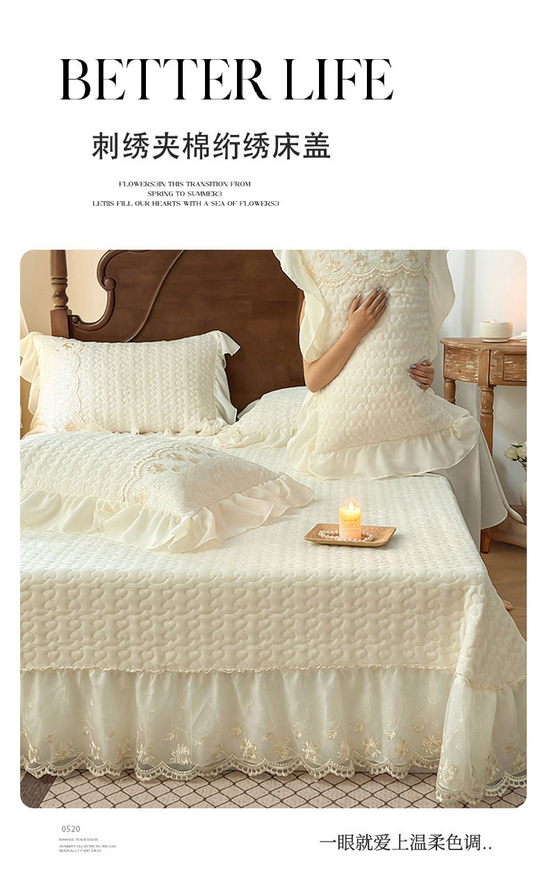 (总)乐朵家居 2026新款 25-3郁金香 天丝缎蕾丝床裙+可配空调被,绿,豆沙,奶白,灰,紫,卡其