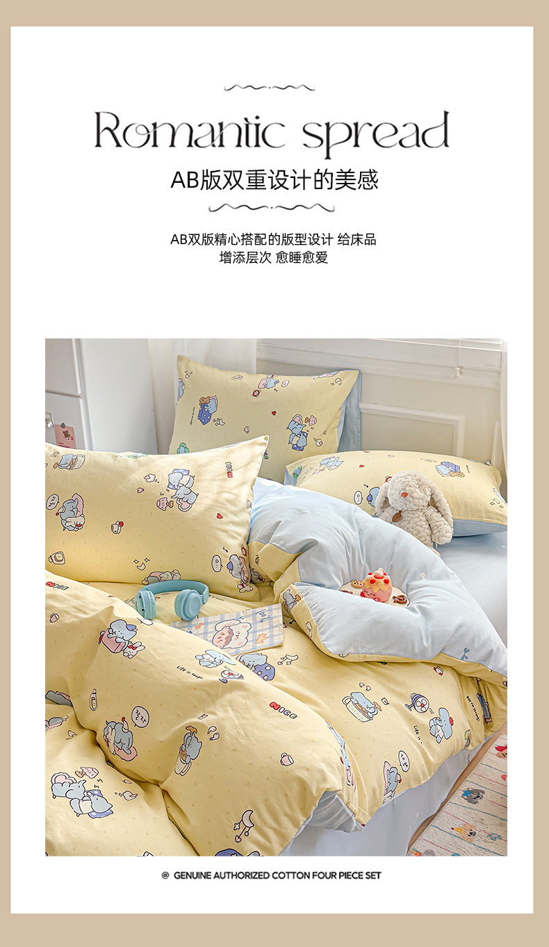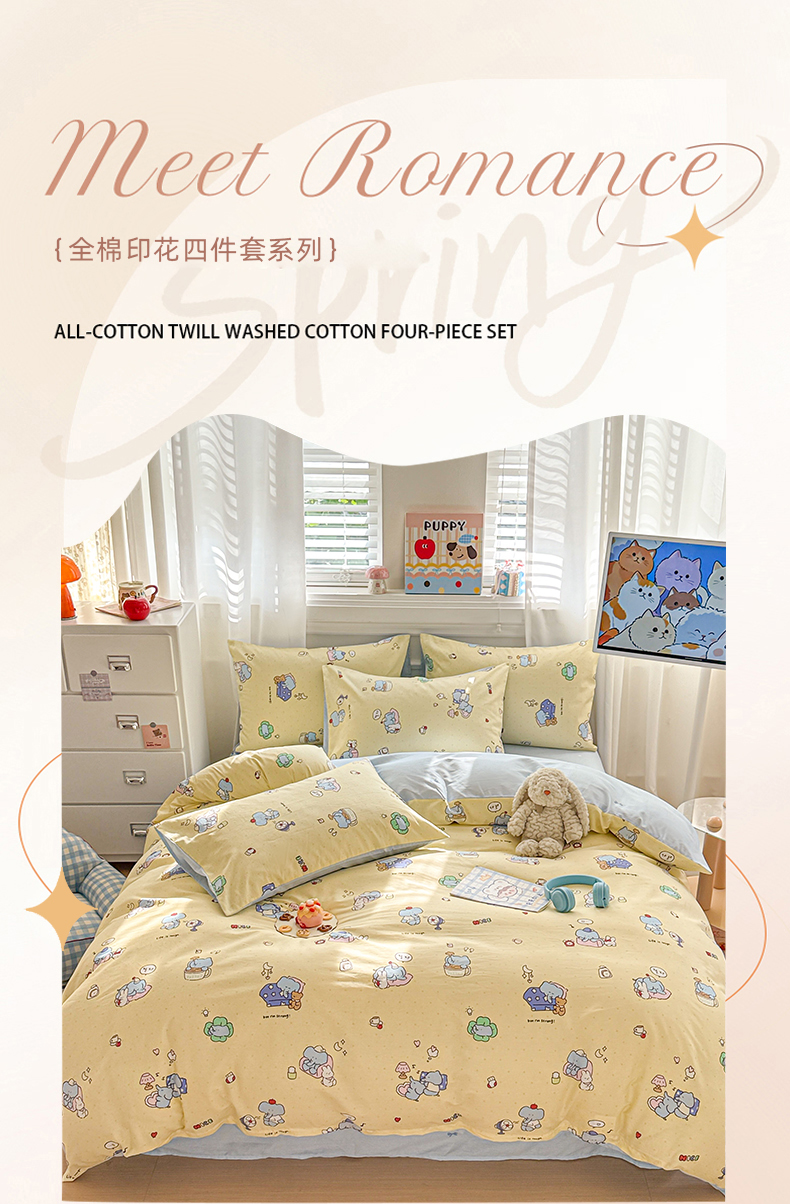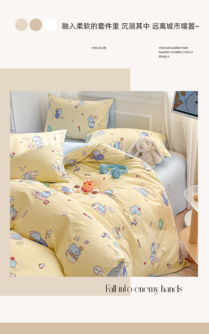 当前位置: 91家纺网 > 商品网购 > 床品套件 > 四件套 > 全棉普通四件套 > 曼之夏 2025新款全棉纯棉印花四件套 笨笨象