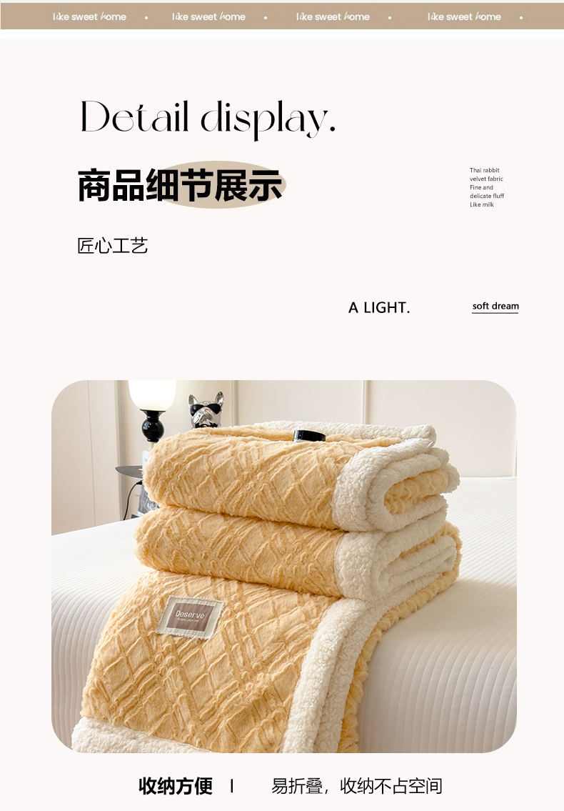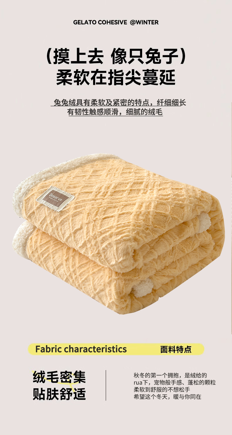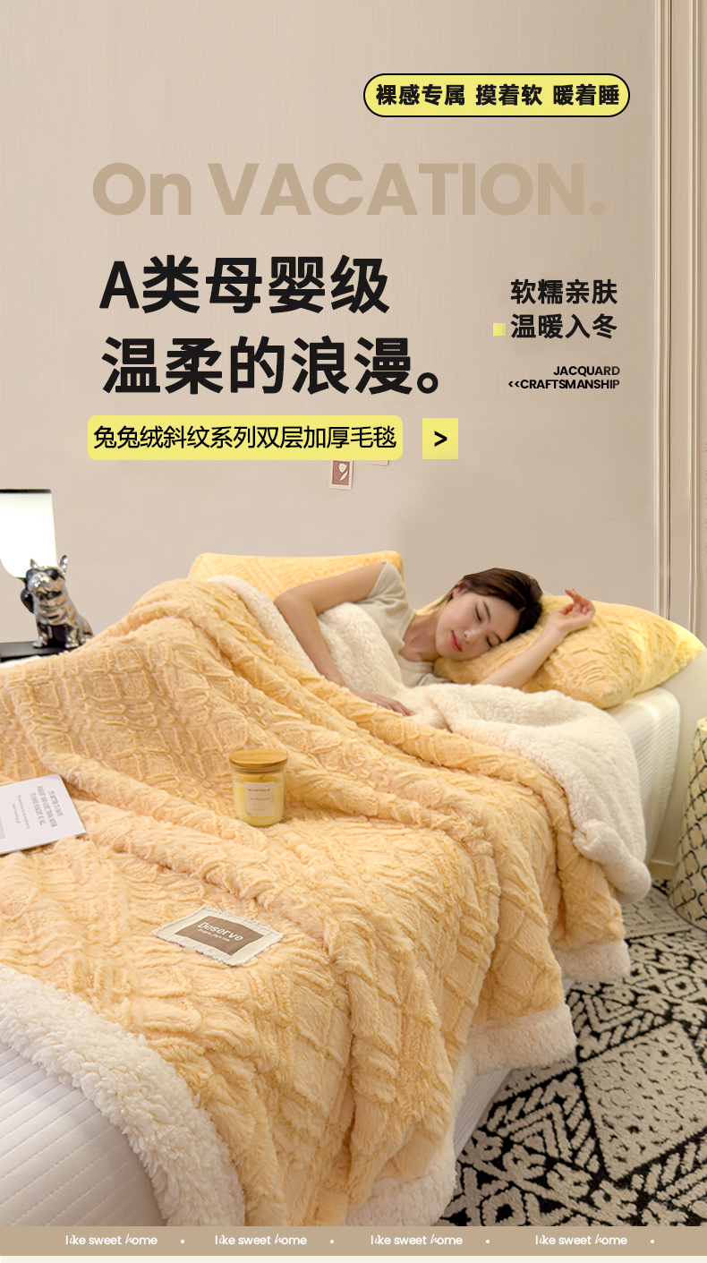 当前位置: 91家纺网 > 商品网购 > 毛毯休闲毯绒毯 > 毛毯 > 慕木家纺 2025新款A类高克重加厚兔毛绒双层毛毯斜纹条纹系列(跨境首选提供买家秀) 兔兔绒-斜纹-奶油黄