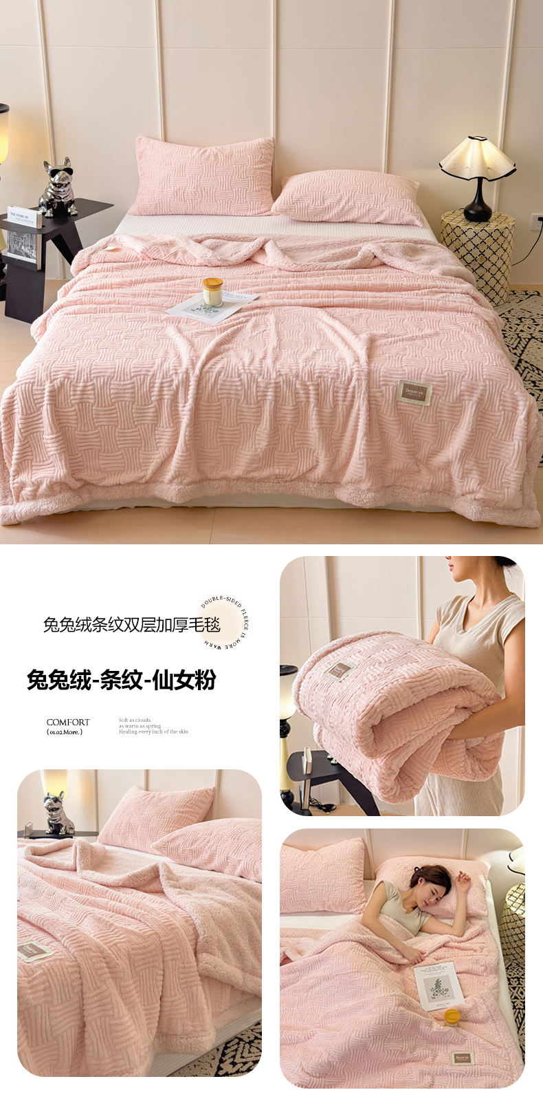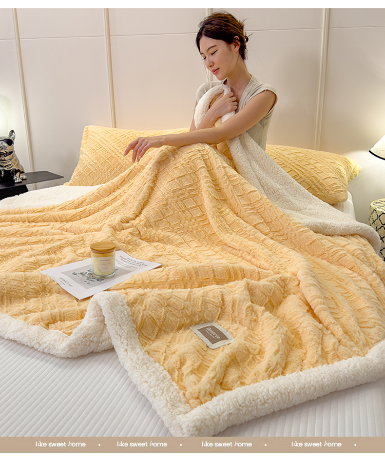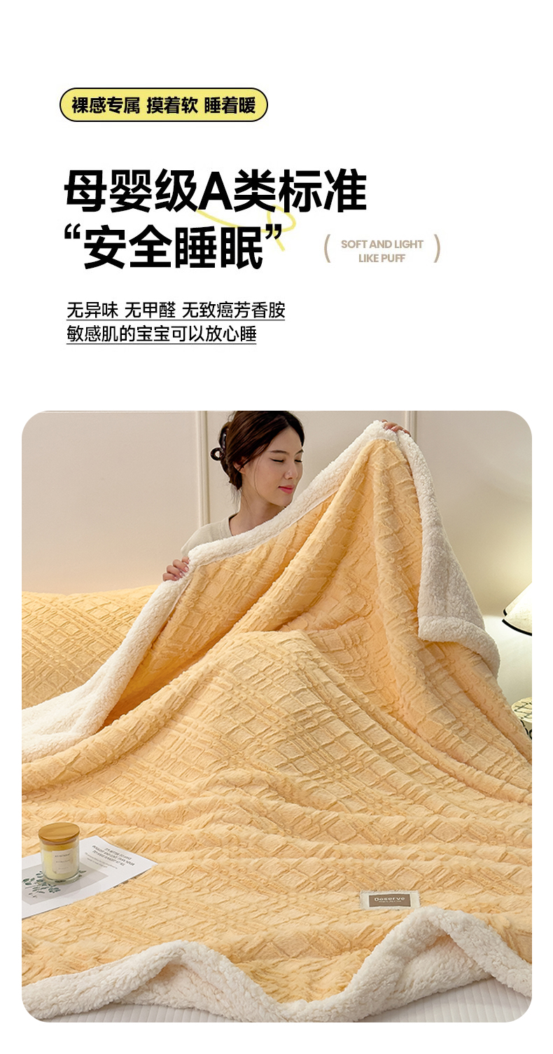 当前位置: 91家纺网 > 商品网购 > 毛毯休闲毯绒毯 > 毛毯 > 慕木家纺 2025新款A类高克重加厚兔毛绒双层毛毯斜纹条纹系列(跨境首选提供买家秀) 兔兔绒-斜纹-奶油黄