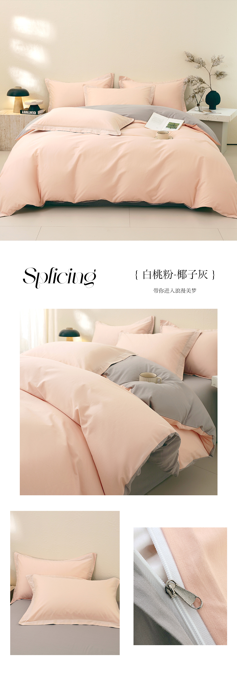 当前位置: 91家纺网 > 商品网购 > 床品套件 > 四件套 > 全棉普通四件套 > 小懒猪 2026新款13372A类双拼纯色全棉纯棉四件套 蜜豆粉-白桃粉