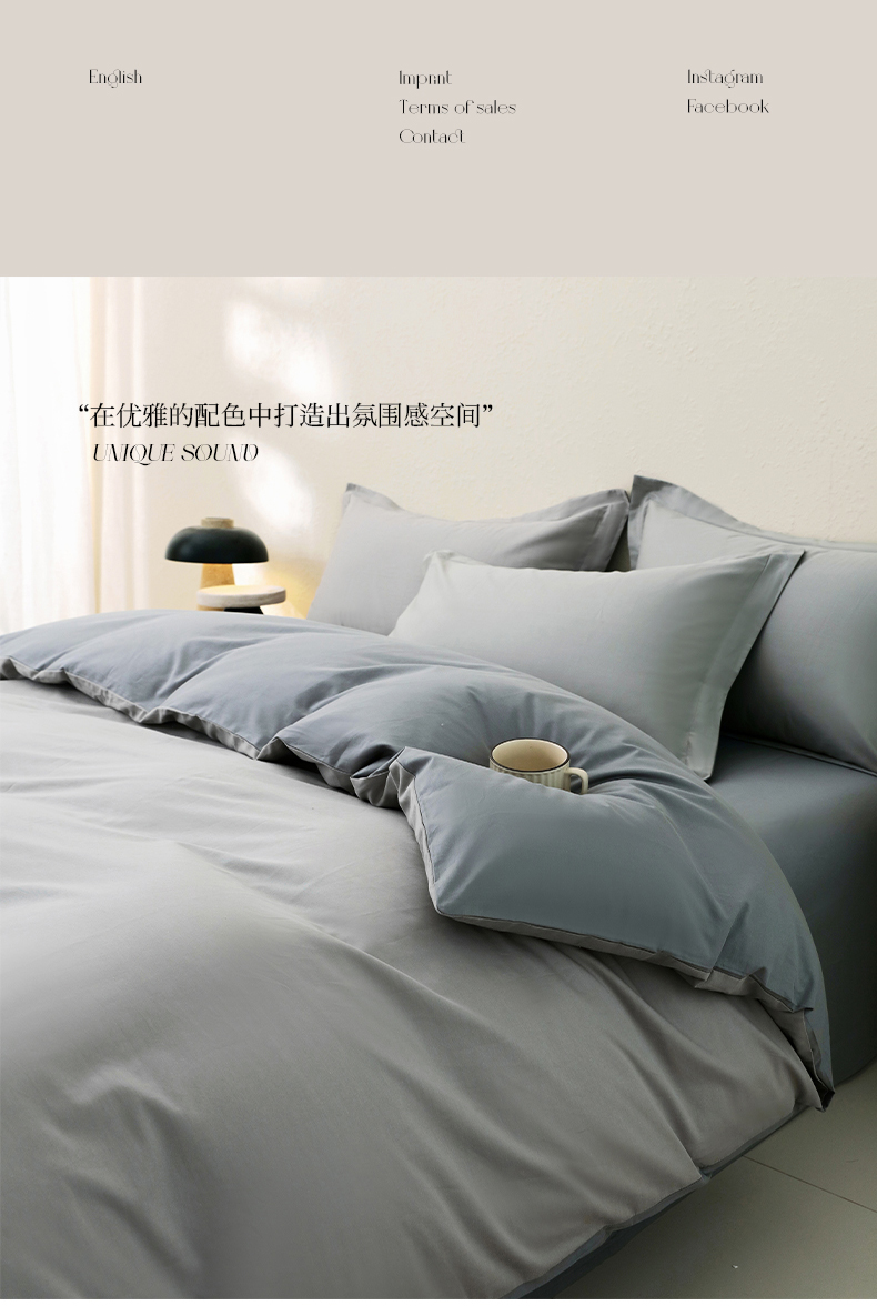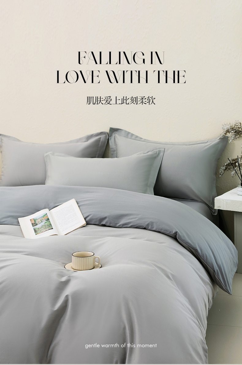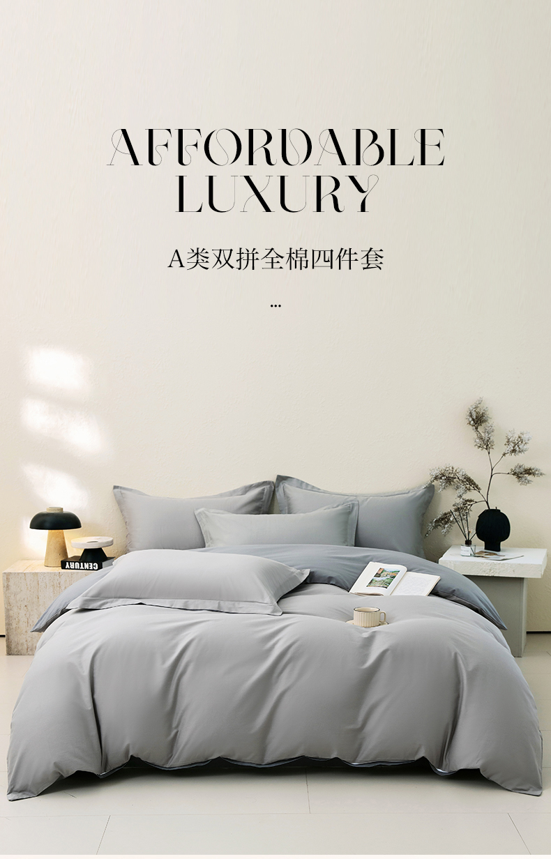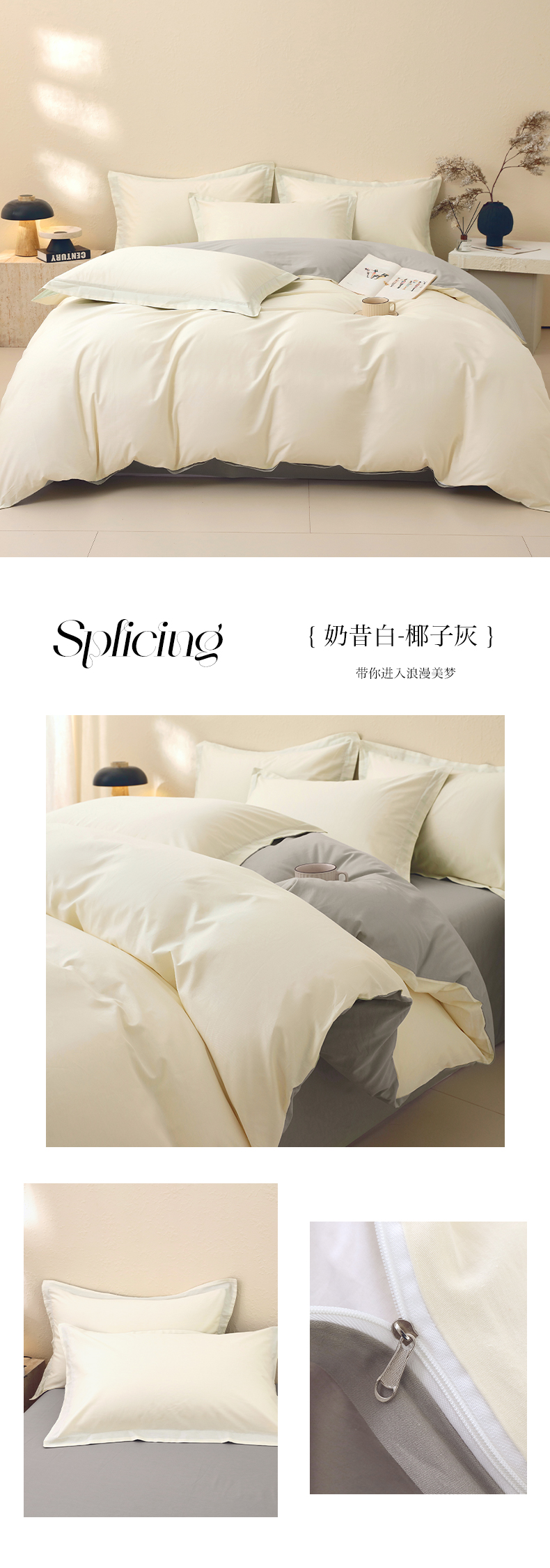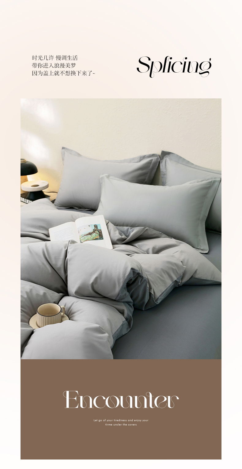 当前位置: 91家纺网 > 商品网购 > 床品套件 > 四件套 > 全棉普通四件套 > 小懒猪 2026新款13372A类双拼纯色全棉纯棉四件套 椰子灰-月岩灰