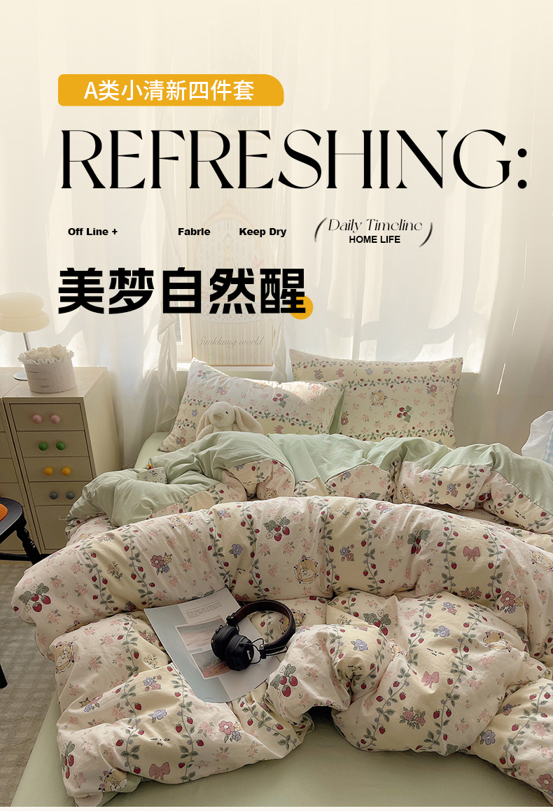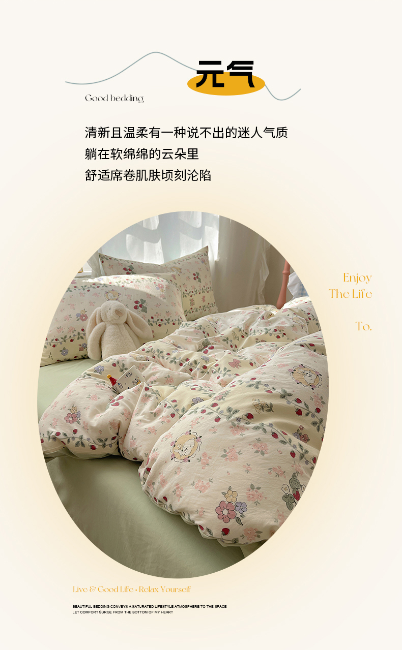 当前位置: 91家纺网 > 商品网购 > 床品套件 > 四件套 > 水洗棉四件套 > 沐芷 2026 A类105g水洗棉四件套超柔手感床上宿舍三件套床单被套 奶味圆饼