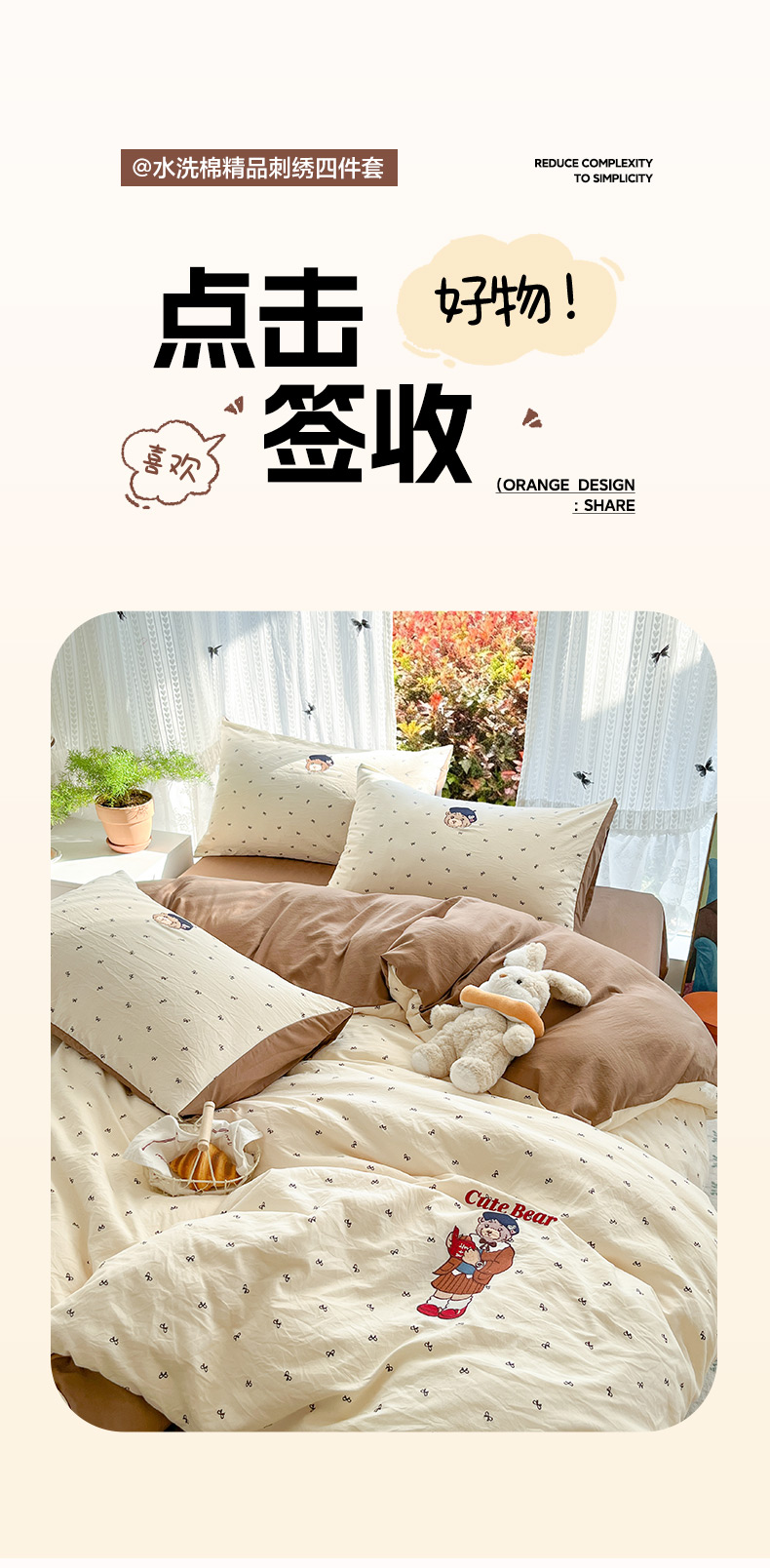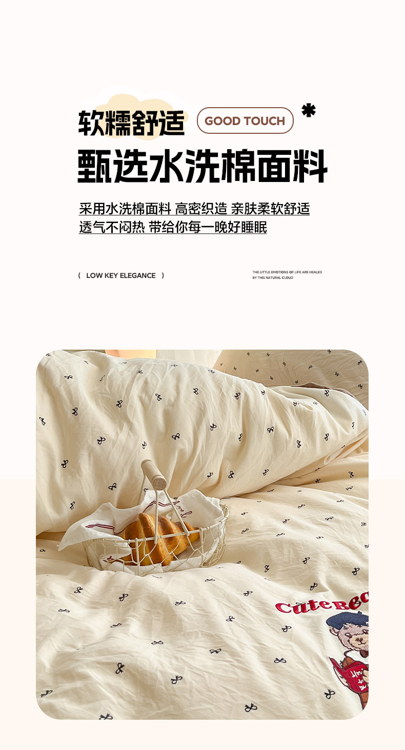 当前位置: 91家纺网 > 商品网购 > 床品套件 > 四件套 > 水洗棉四件套 > 优承佳生活馆 2026新款软糯云朵棉刺绣三件套四件套单被套小熊系列-系列二 看书熊