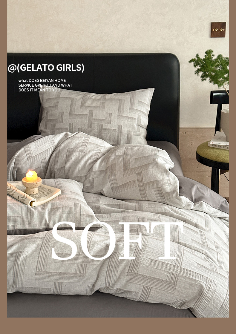 当前位置: 91家纺网 > 商品网购 > 床品套件 > 四件套 > 全棉普通四件套 > ab家纺 2026新款全棉纯棉三层纱提花四件套 暖阳-灰