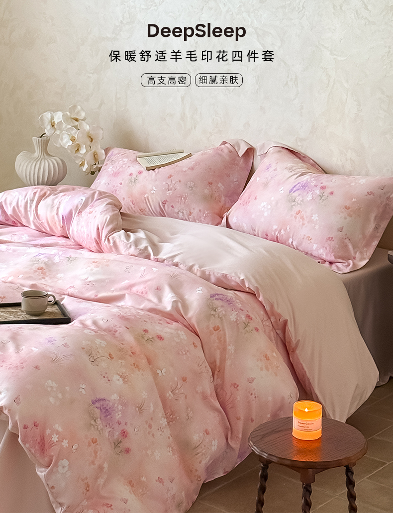 Mr.pig猪先生水洗棉 2025新款保暖舒适羊毛印花工艺四件套 椿山