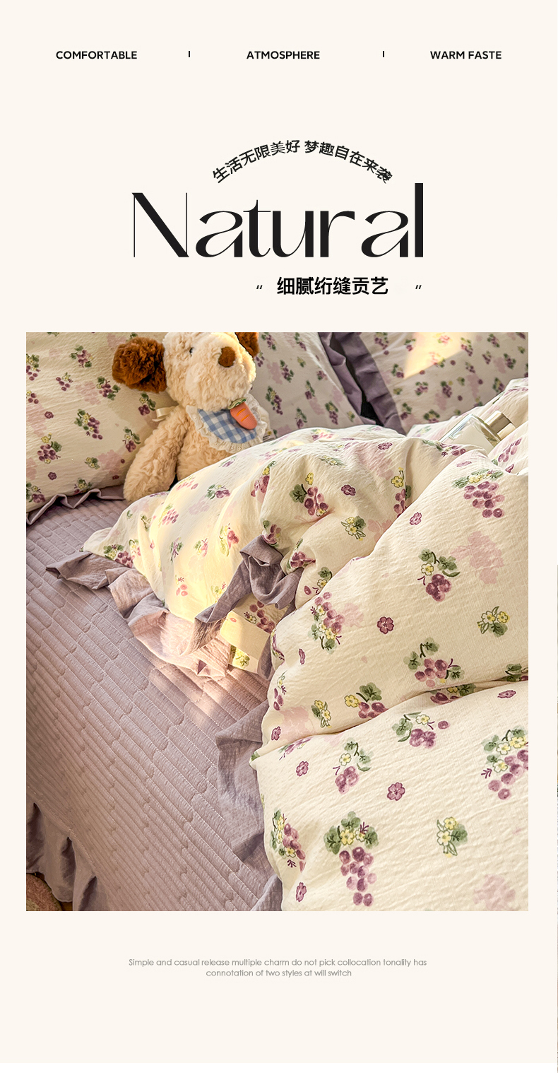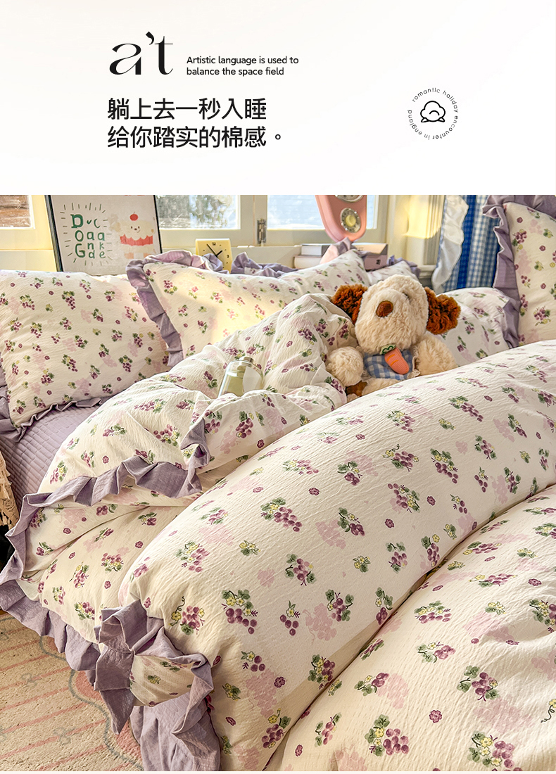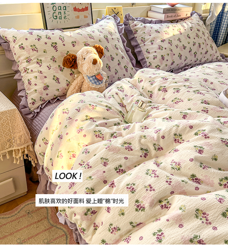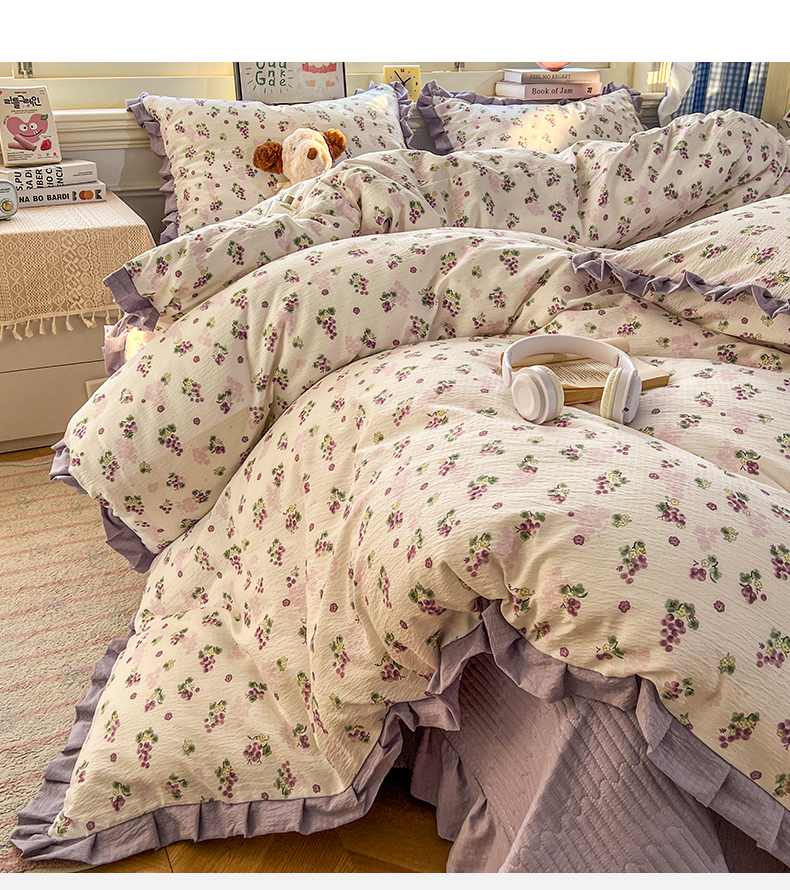 商品名称:美梦家纺 2026春夏新款云感皱皱纱床盖四件套 葡萄多多