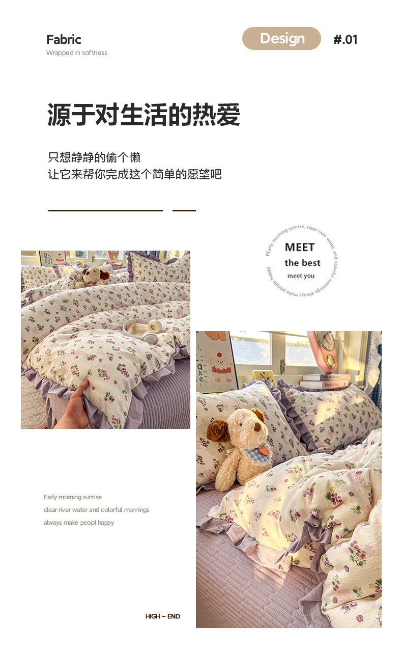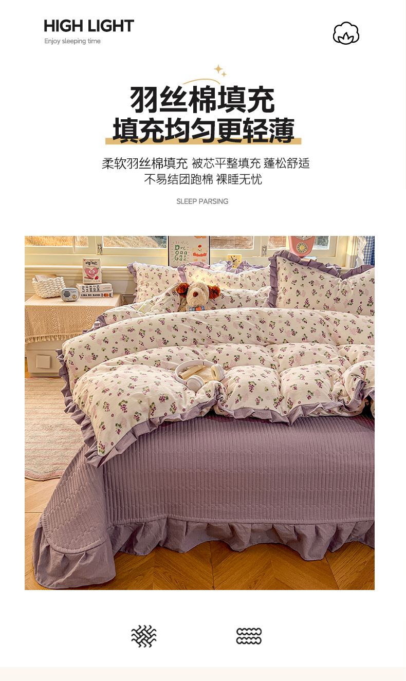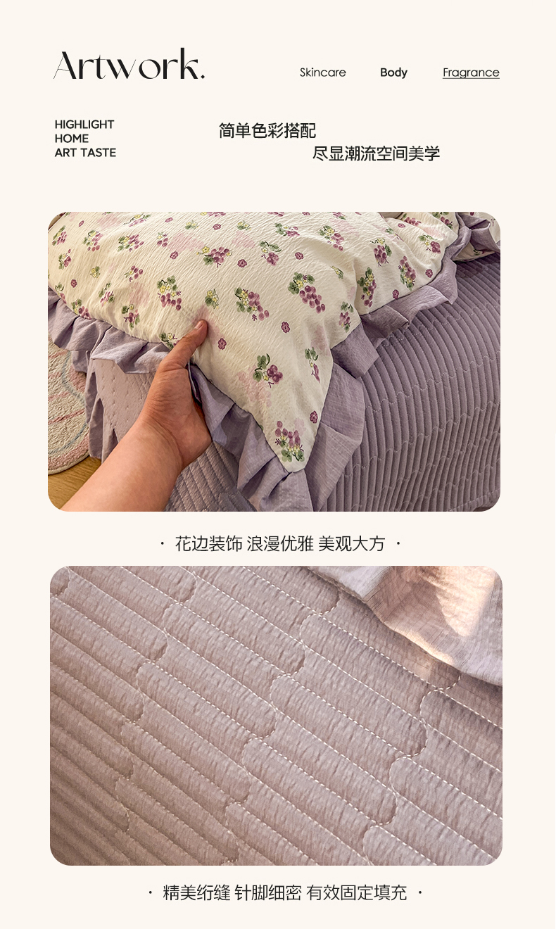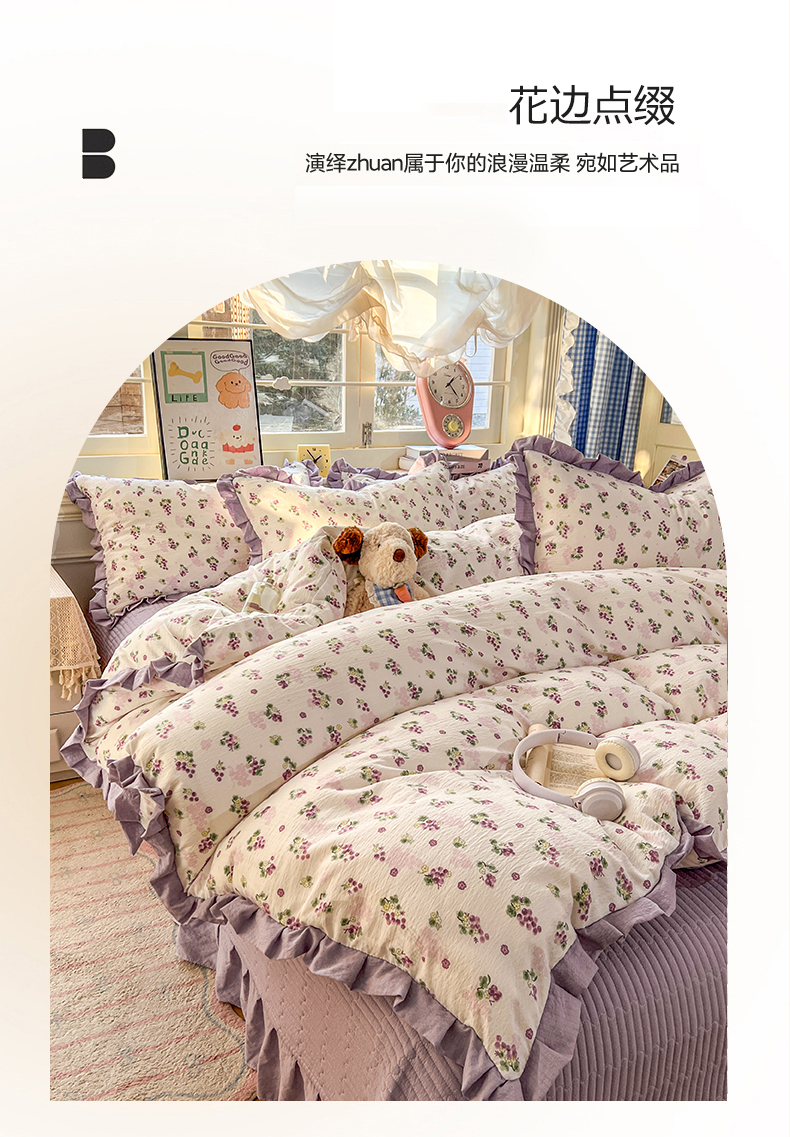 商品名称:美梦家纺 2026春夏新款云感皱皱纱床盖四件套 葡萄多多