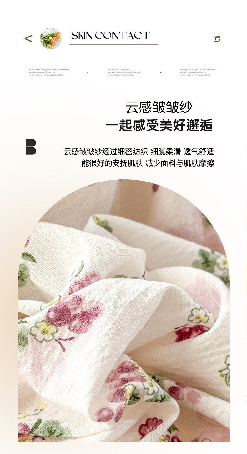 (总)美梦家纺 2026春夏新款云感皱皱纱床盖四件套,玫瑰园,芭比兔,波点咖,椿庭序,见花则喜,蜡笔画,葡萄多多,俏皮狗,苏槿,星眠云野,枝语花繁,竹歆花语