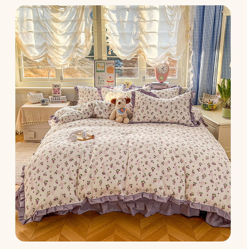 美梦家纺 2026春夏新款云感皱皱纱床盖四件套 葡萄多多