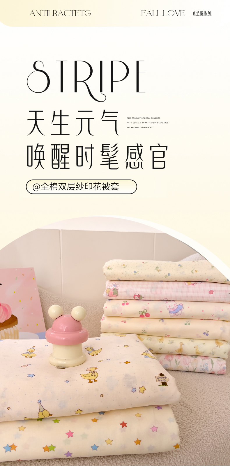 (总)DoDo 兜兜 2026新款全棉纯棉小温暖双层纱单被套单品被套被套单件(可定做尺寸),组合图仅做展示,缤纷小兔,春日女孩,春日小狗,丛林小兔,格子兔,蝴蝶兔兔,花园小狗,可可熊,快乐鸭,萌萌狮,气球小象,五彩樱桃,邂逅-粉,邂逅-黄,幸福小象-绿,雅颜,柚香