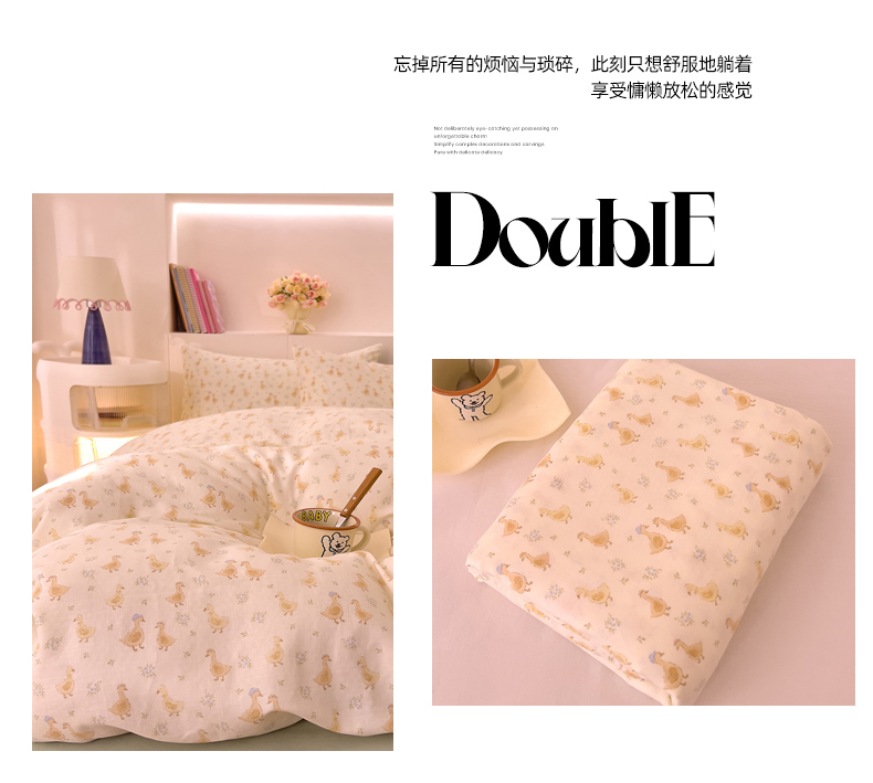 (总)DoDo 兜兜 2026新款全棉纯棉小温暖双层纱四件套【可定做尺寸】,缤纷小兔,春日女孩,春日小狗,丛林小兔,格子兔,蝴蝶兔兔,花园小狗,可可熊,快乐鸭,萌萌狮,气球小象,五彩樱桃,邂逅-粉,邂逅-黄,幸福小象-绿,雅颜,柚香