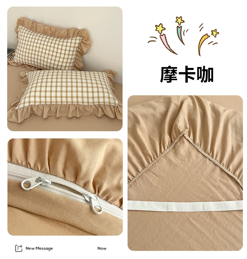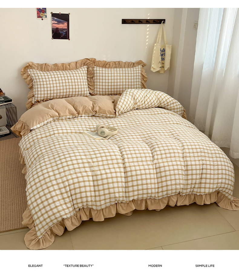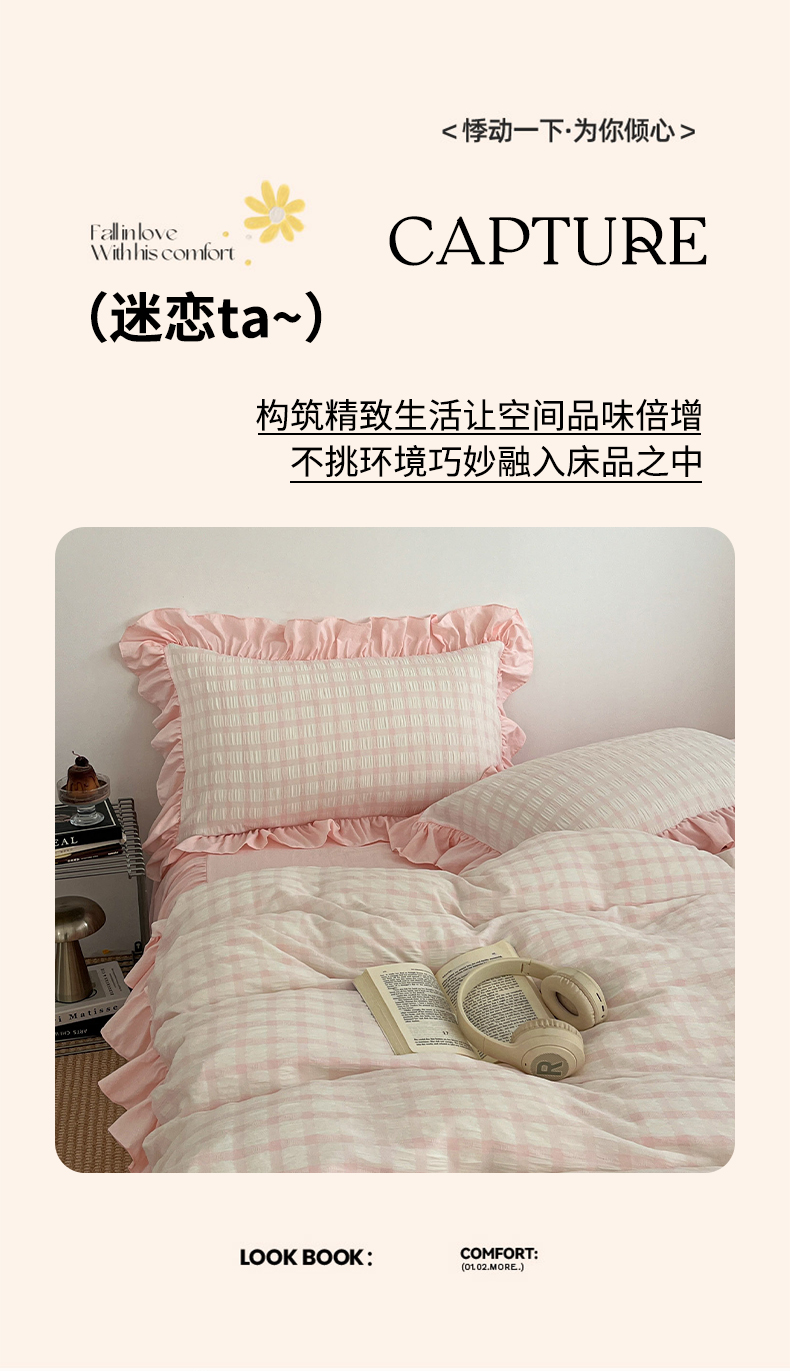 (总)乐卧家居 2026新款韩系千禧梦核复古回潮少女感格纹褶皱款荷叶边四件套