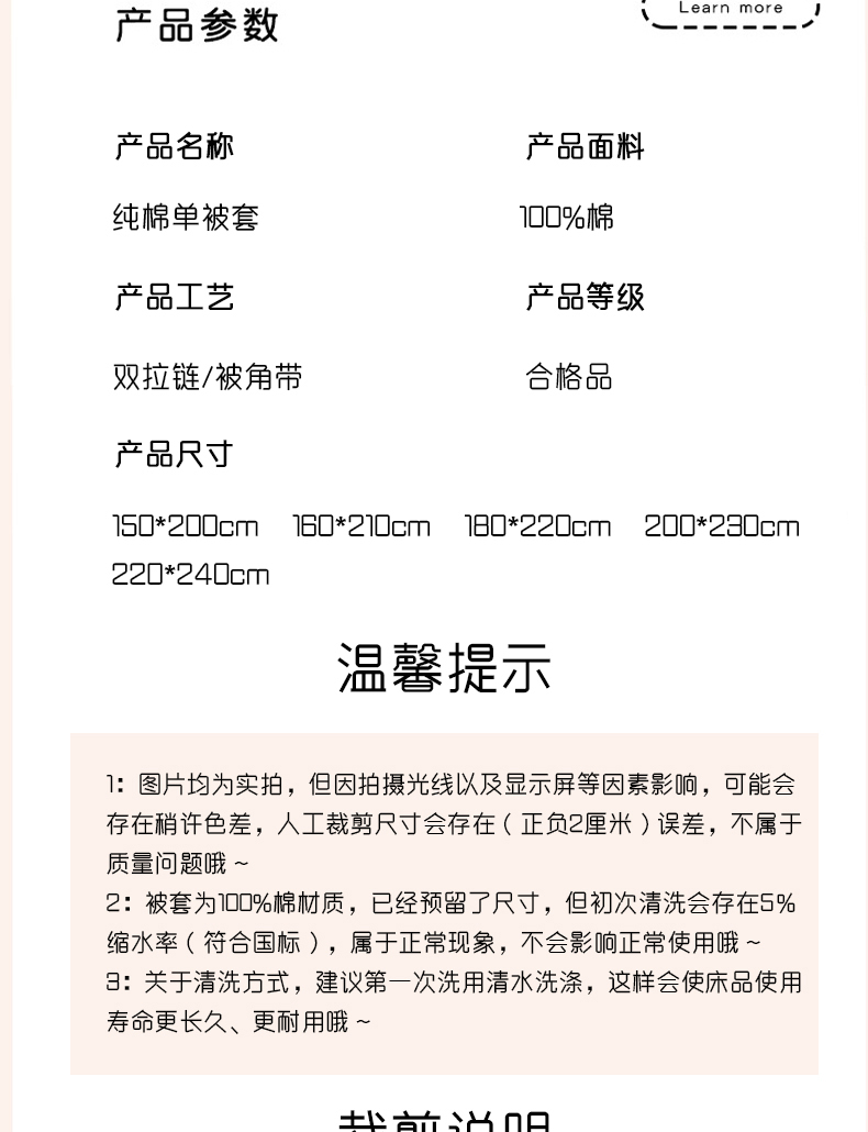 180*220cm单被套+枕套一对 | ¥57.00 |
